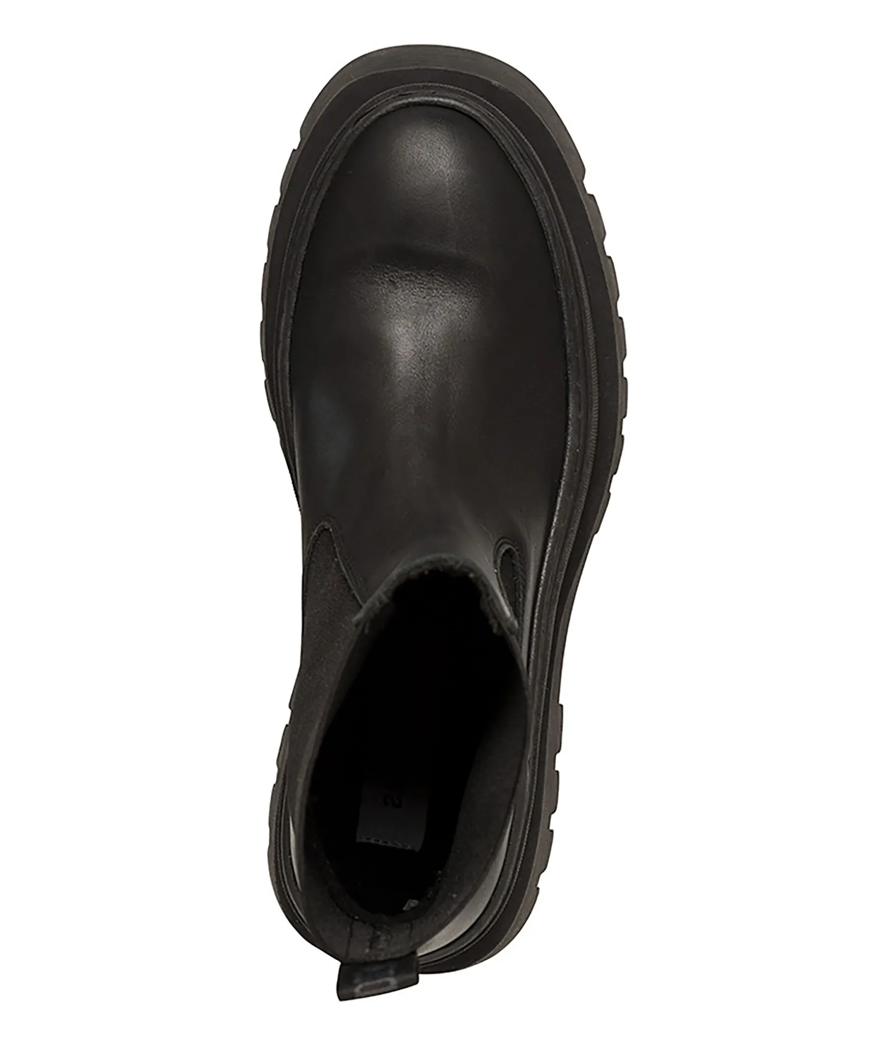 Svarta Chelsea Boots I Lader Fran Steve Madden. Skaft I Elastisk Resar. Grov Sula I Gummi, Klackhojd 5 Cm Och Plattforms Hojd 3 Cm. Vavt Band Med Logotyp Langst Halen Med Ogla.