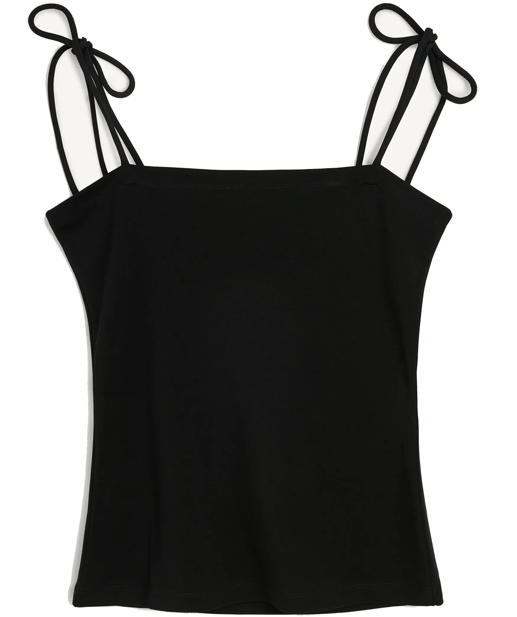 Svart, Mjukt Linne I En Kroppsnara Passform Fran By Malene Birger. Nagot Stretchig Med Justerbara Axelband Som Knyts Som Rosetter Pa Axlarna.