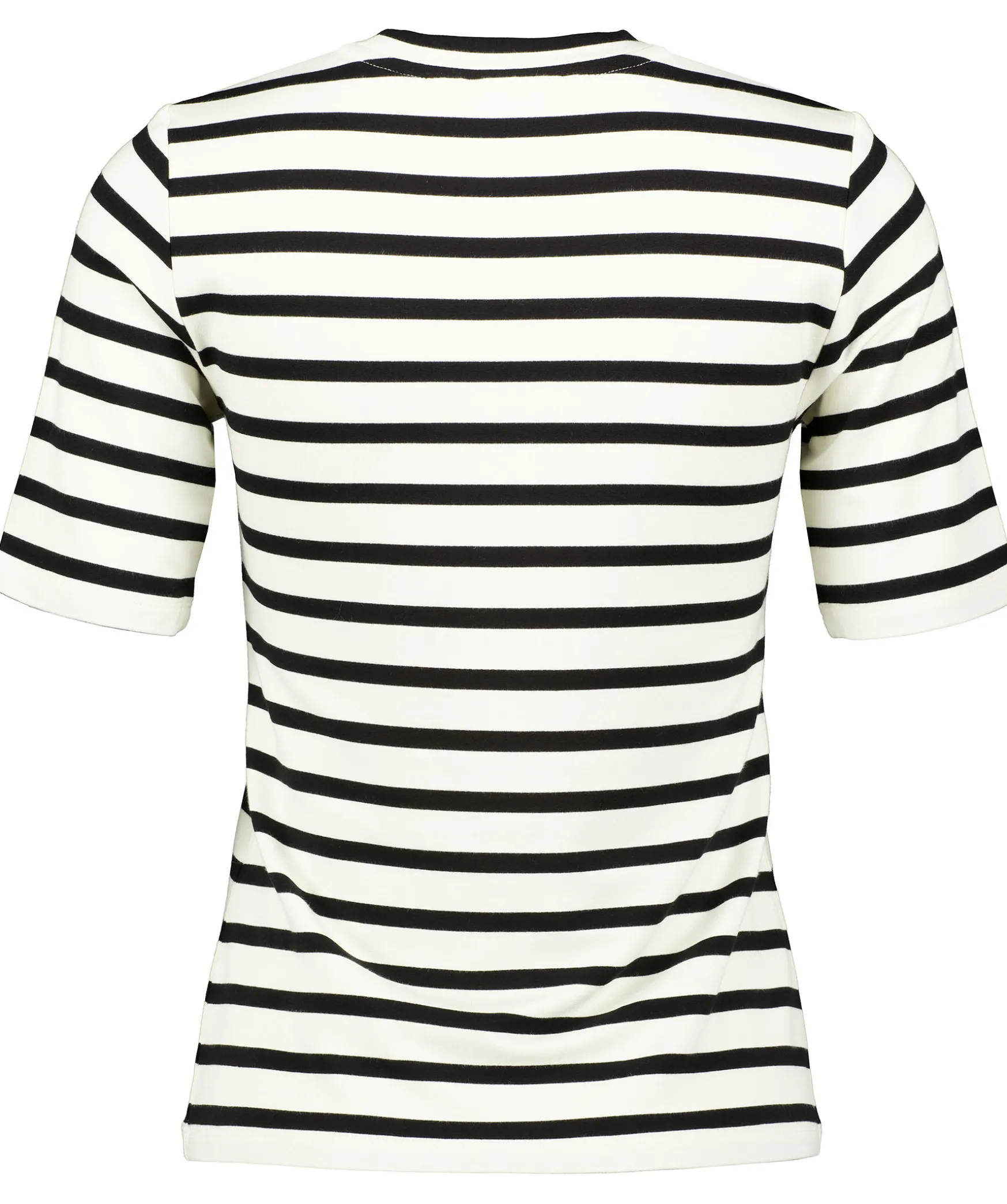 Svart/Vit Randig T-Shirt Fran Stylein. Rundad Halsringning Och Lite Langre T-Shirtarmar. Tillverkad I Stretchig Viskos. * Hog Rundad Halsringning* Langa T-Shirtarmar* Stretchigt Tyg