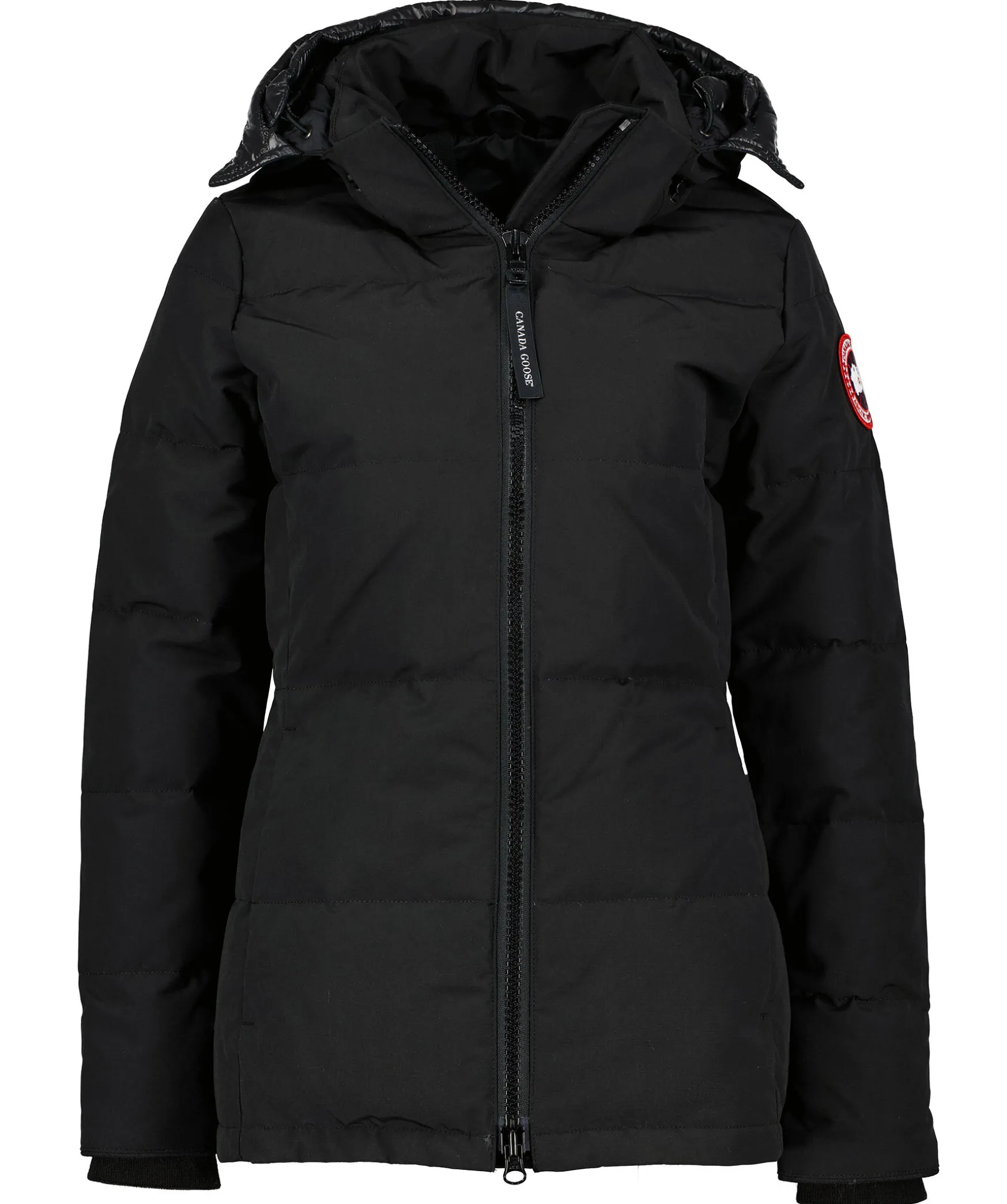 Svart Dunjacka Fran Canada Goose. Stangs Framtill Med Tvavagsdragkedja. Tva Framfickor Med Skont Fleecefoder Samt Tva Praktiska Innerfickor. Broderad Patch Med Logotyp Pa Vanstra Armen. Luva Med Dragsko, Dragsko I Midjan. Ribbstickade Muddar Vid Armslut.