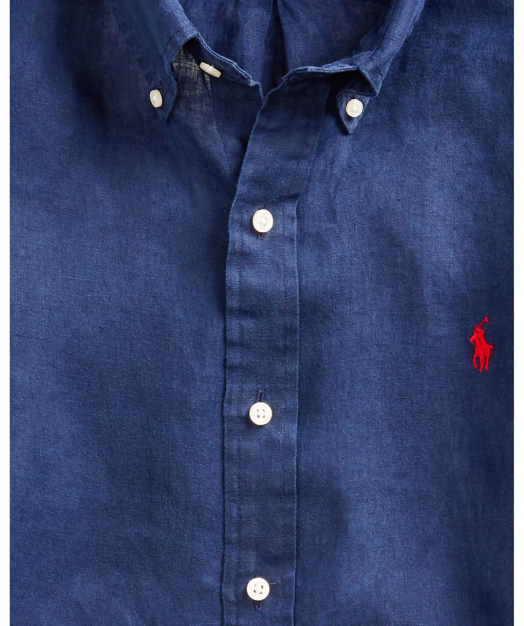 Marinbla Linnekskjorta I En Custom Fit Fran Polo Ralph Lauren. Skortan Ar Tillverkad I Ett Luftigt Linnetyg. Button Down Krage Och Rod Brodrad Logotyp Pa Brostet.
