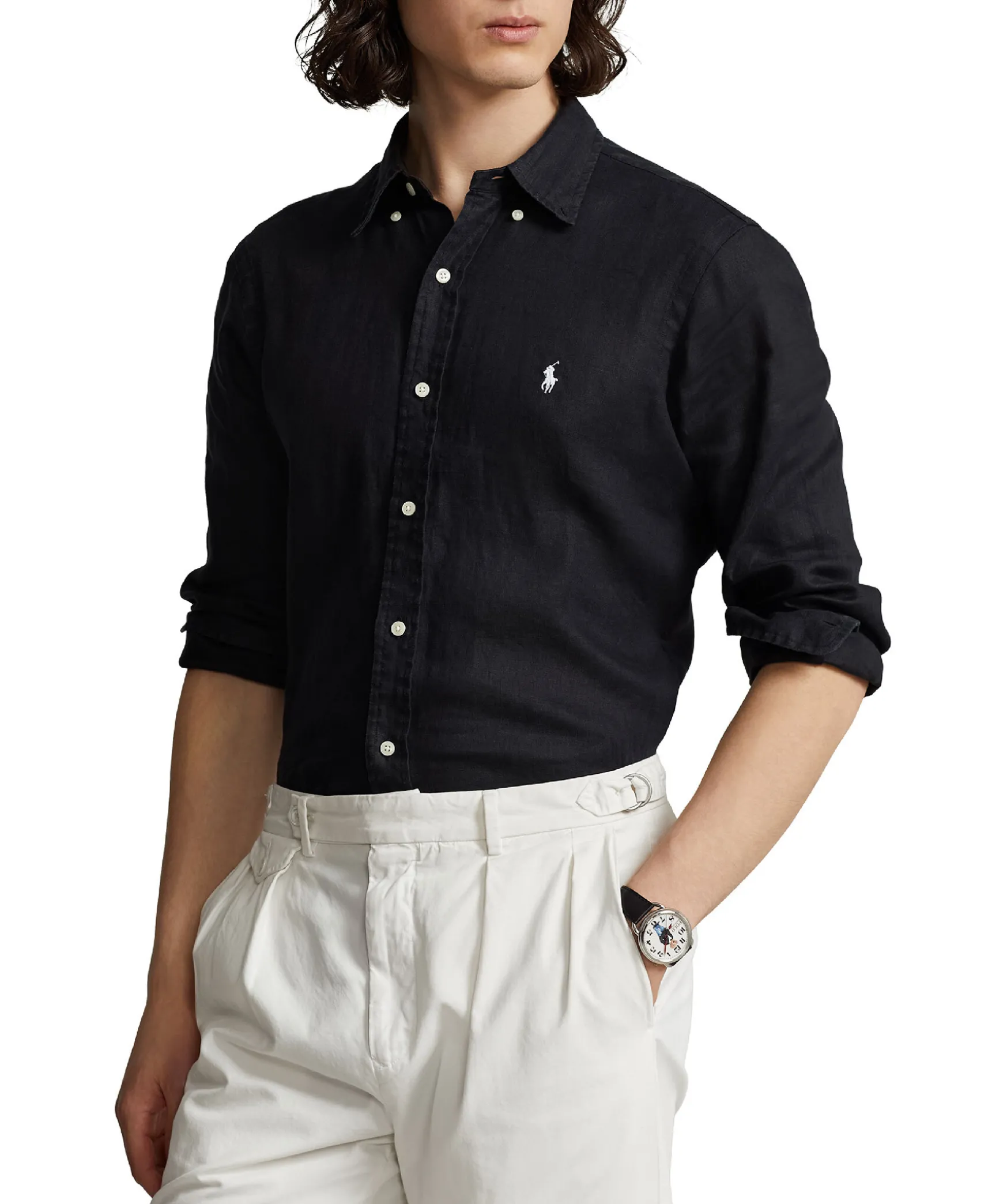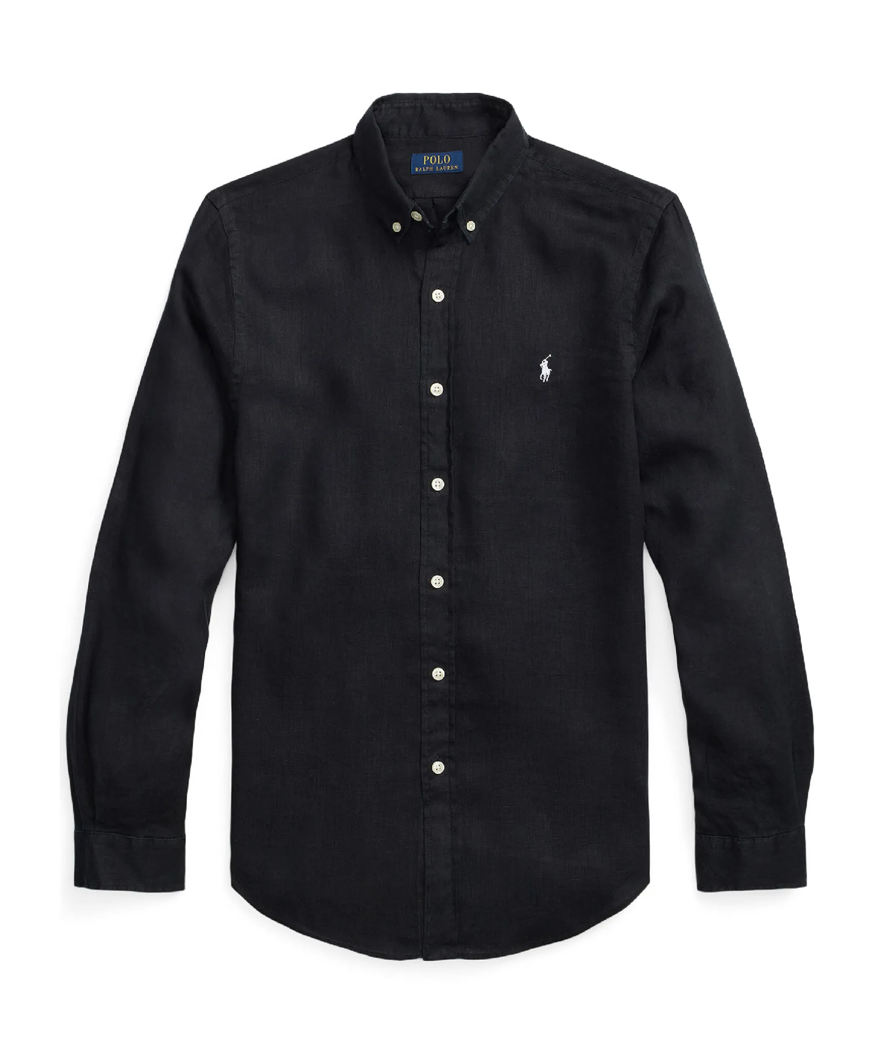 Svart Linnekskjorta I Custom Fit Fran Polo Ralph Lauren. Skjortan Ar Tillverkad I Ett Luftigt Linnetyg. Har En Button Down Krage Och Vit Broderad Logotyp Pa Brostet. Stangs Med Knappar Framtill Och Har Knappar I Armslut.
