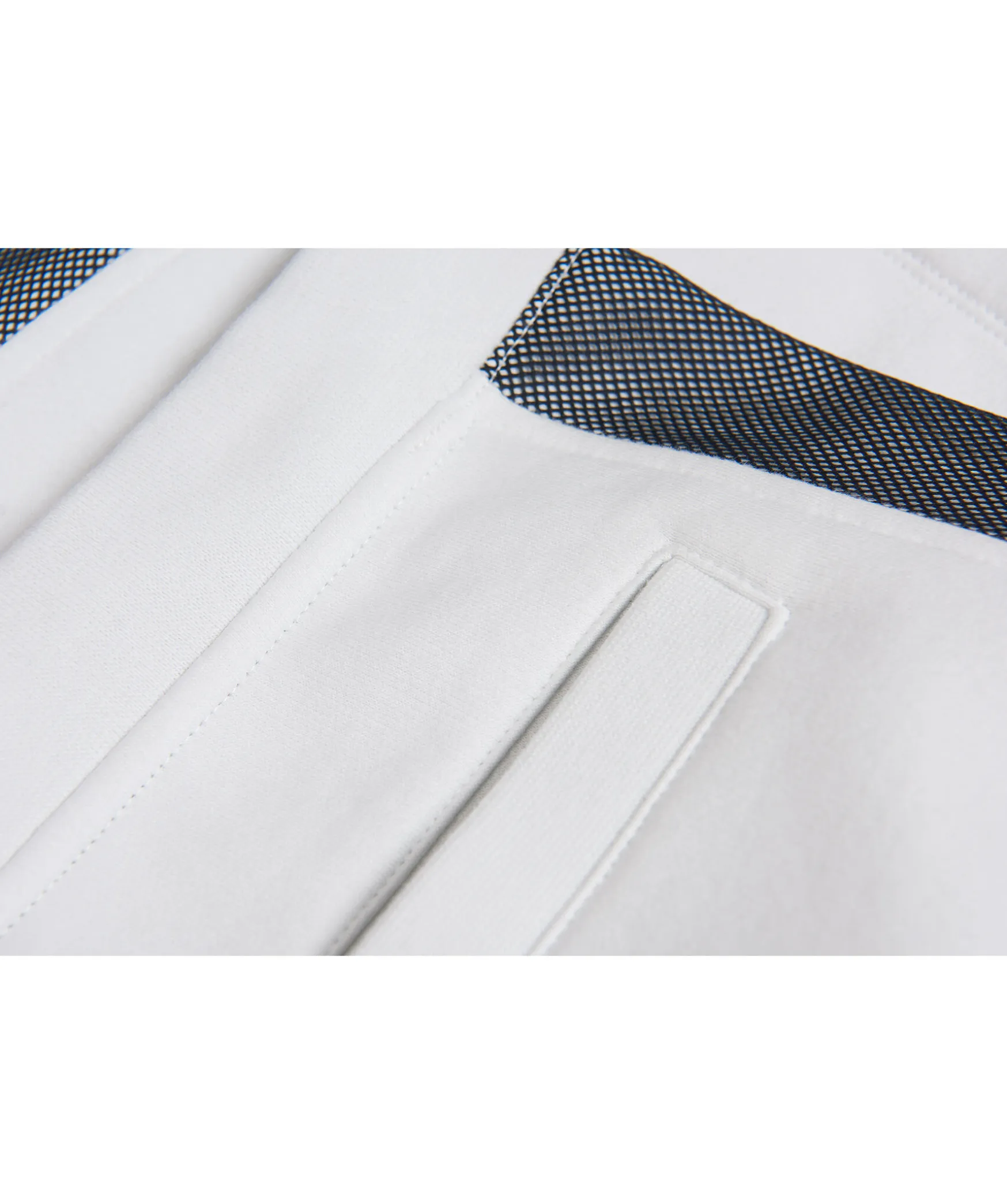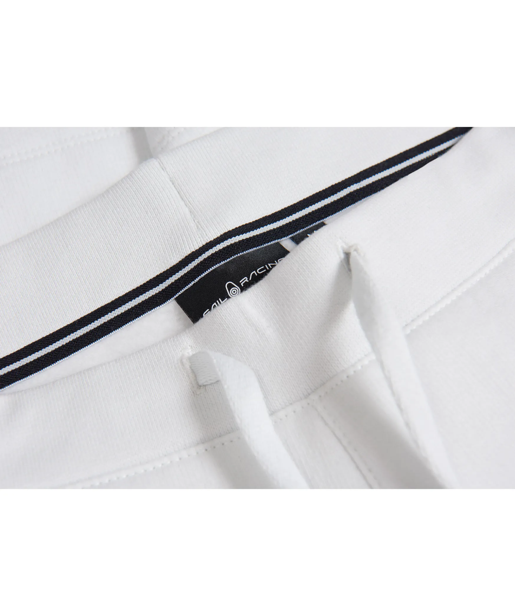 Vita Mjukisshorts Tillverkade I Bomull Och Polyestertyg Fran Sail Racing. Justerbar I Midjan Samt Oppna Fickor Fram Och Bak. Ribbstickad Mudd I Midja, Har Svarta Revarer Pa Bada Sidorna I Meshtyg Och Sail Racing Tryck Framtill.