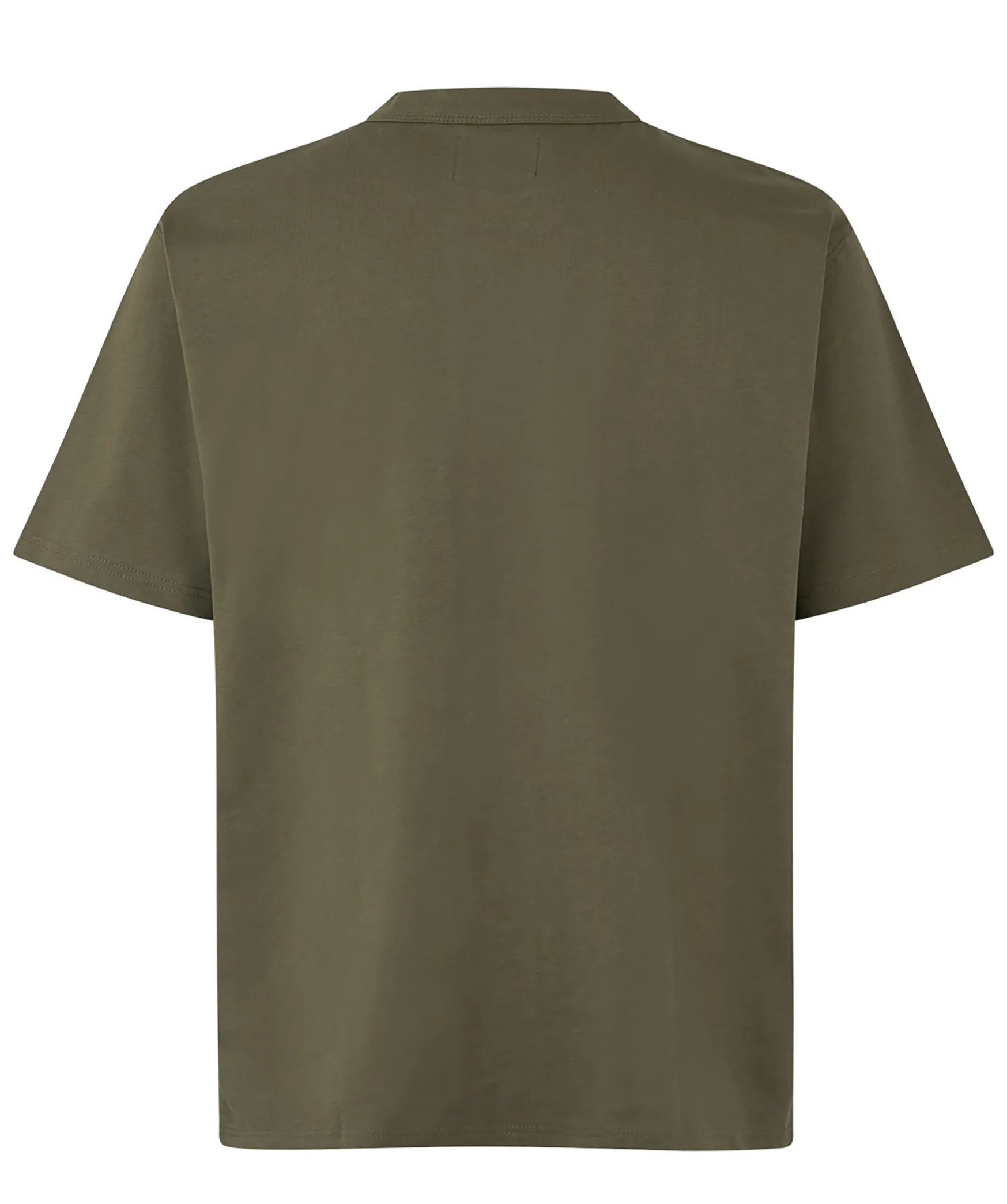 Olivgron T-Shirt Fran Mads Norgaard. Gjord I 100% Bomull. Rundad Hals Med Ribbstickad Mudd. Nagot Droppade Axlar Och Extra Langa T-Shirt Armar.