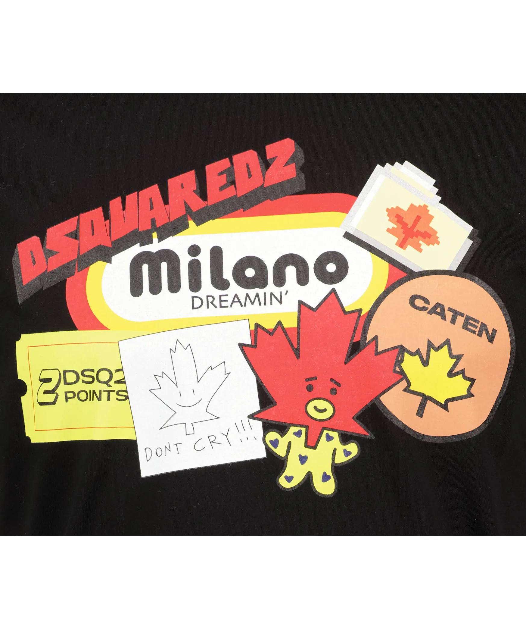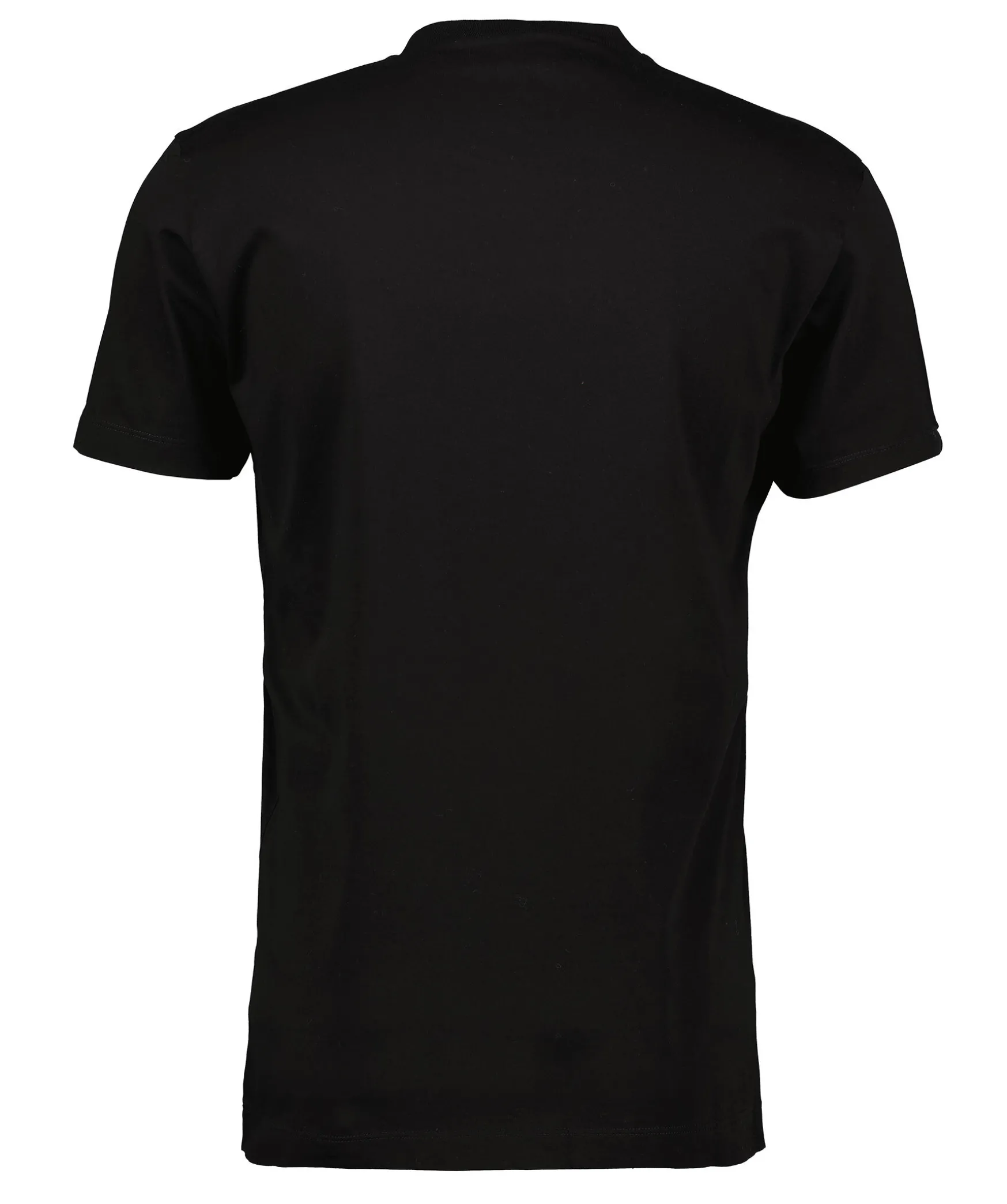 Svart T-Shirt Med Gult, Vitt Och Rott Tryck Pa Brostet Fran Barbour. Tillverkad I 100% Bomull. Rundad Halsring.