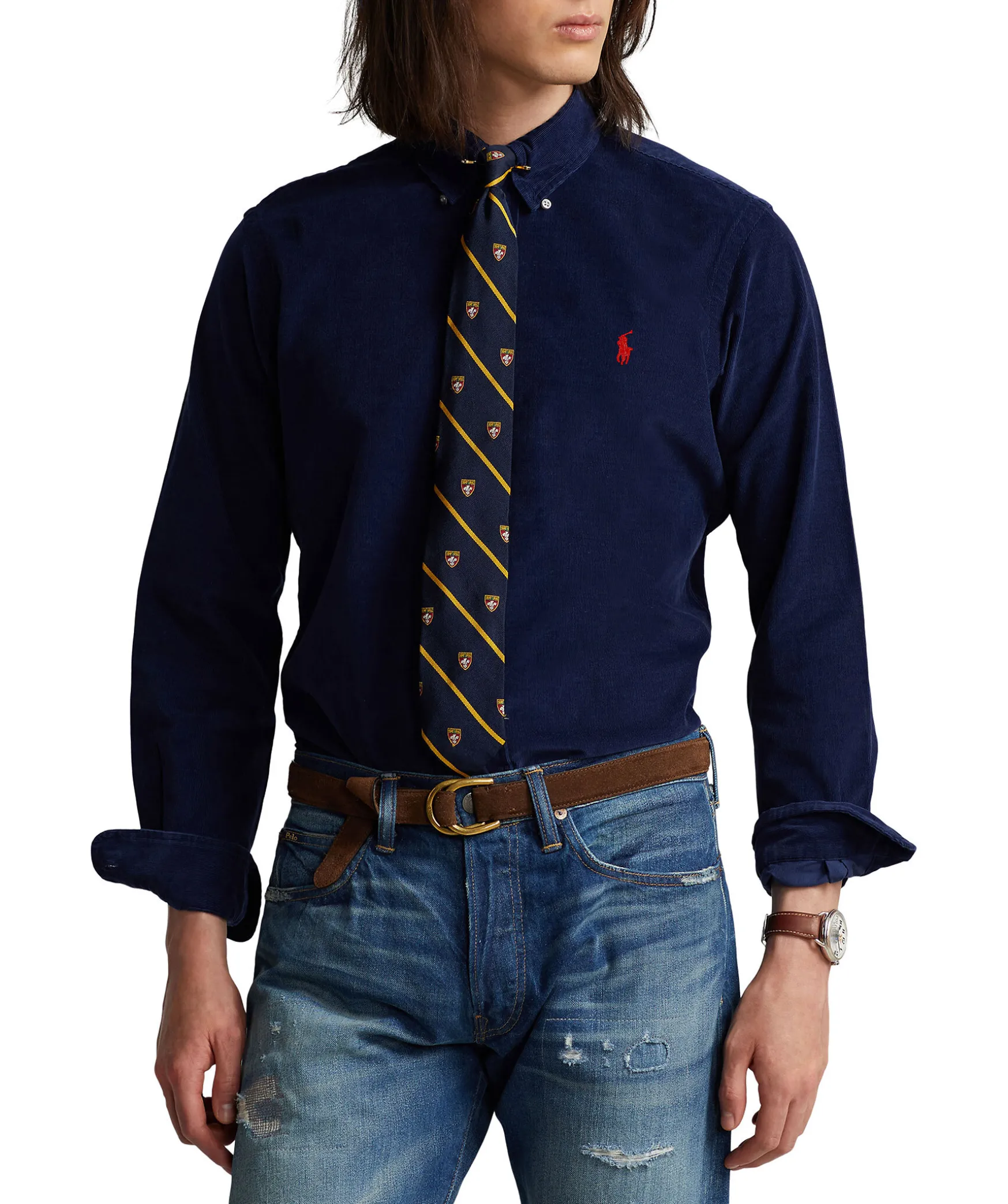 Marinbla Skjorta I Fin Manchester Fran Polo Ralph Lauren. Button-Down Krage Och Slim Fit Modell. Knappsla, Langa Armar Med Manschetter Med Knappning Nedtill Och Delat Ok Bak Med Ett Veck Ger En Bekvam Passform. Signaturbroderad Hast Pa Vanster Brost. Tillverkad I Bomull.