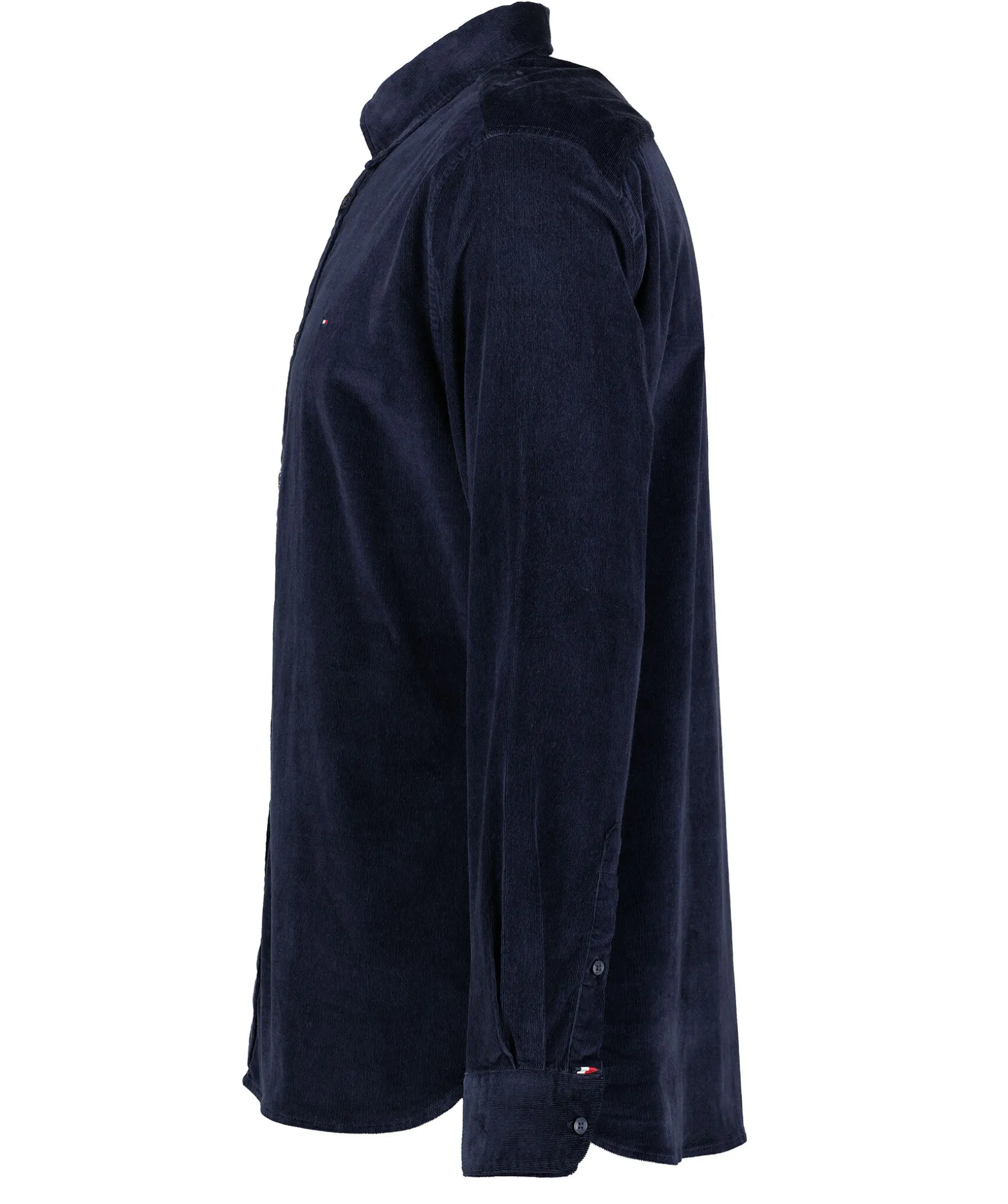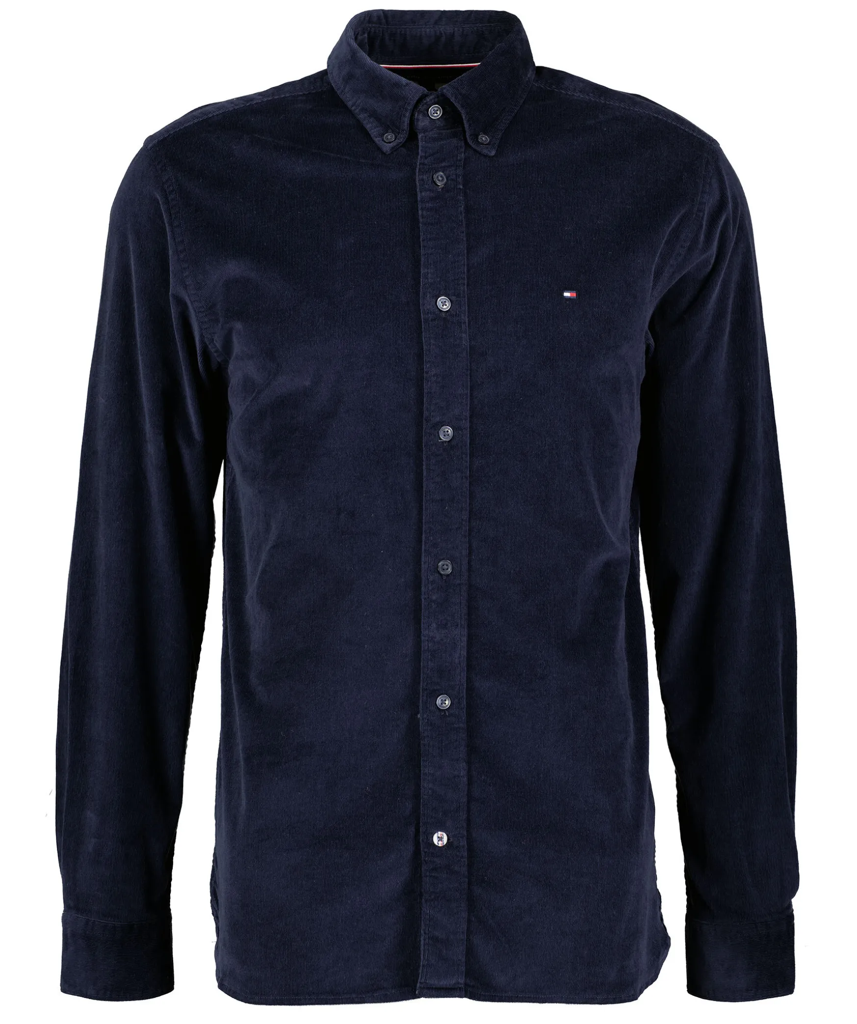 Morkbla Langarmad Manchester Skjorta Fran Tommy Hilfiger. Tillverkad I En Bomullsblandning. Button Down Krage. Liten Broderad Flagga Pa Vanster Sida Av Brostet Samt En Signatur Randig Sista Knapp.