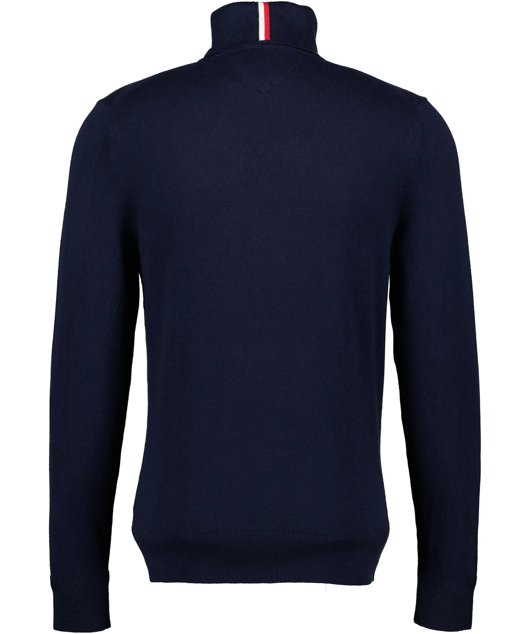 Marinbla Polotroja Fran Tommy Hilfiger. Hog Krage, Ribbad Muddar Vid Arm Och Plagg Slut. Broderad Logotyp Pa Brostet. Tillverkad I En Blandning Av Bomull Och Kashmir.