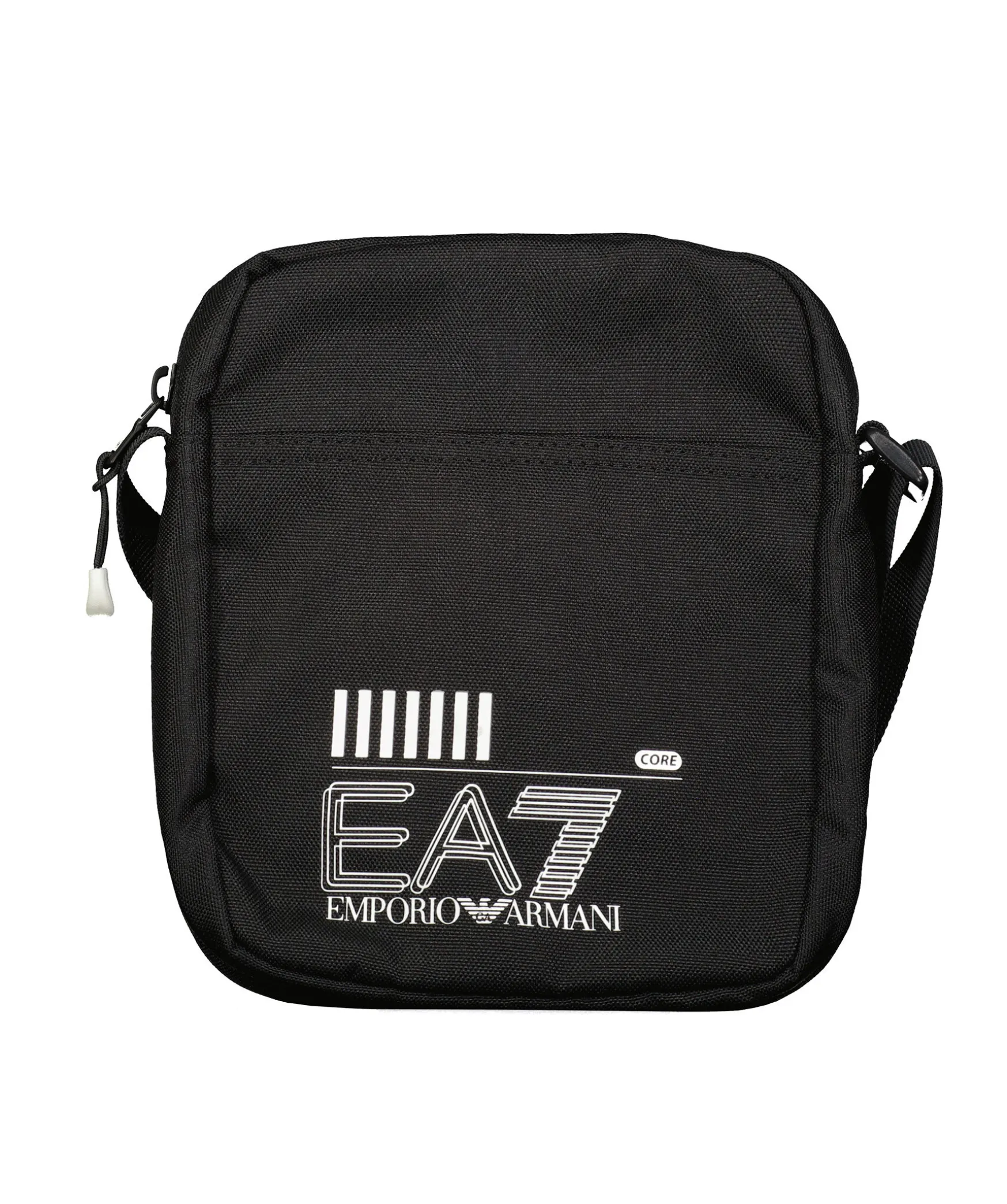 Svart Liten Crossbody Vaska Fran Armani Ea7. Liten Axelvaska Av Atervunnet Tyg Med Valorganiserad Insida. Utrustad Med En Justerbar Axelrem, Den Ar Utsmyckad Med En Kontrasterande, Overdimensionerad Ea7-Logotyp Och En Rymlig Framficka Med Dragkedja, Perfekt For Att Ha Allt Du Behover Nara Till Hands.