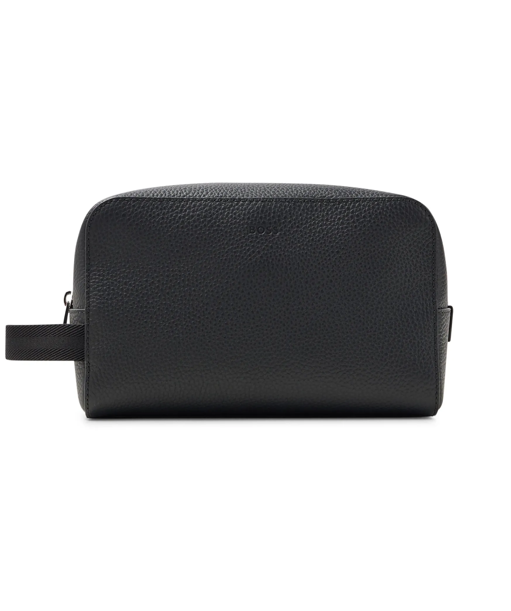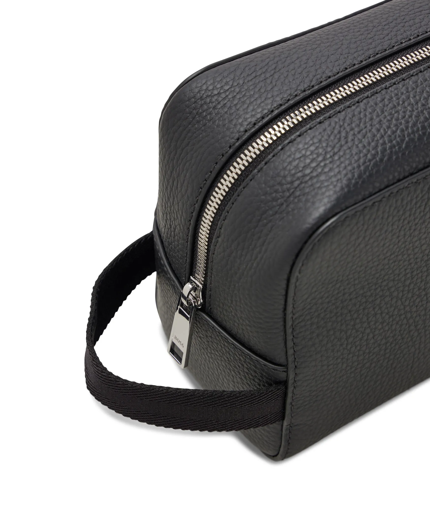 Svart Necessar I Lader Fran Boss Black. Praglad Logotyp Fram, Rem Pa Sidan. 25 X 15 X 11 Cm.