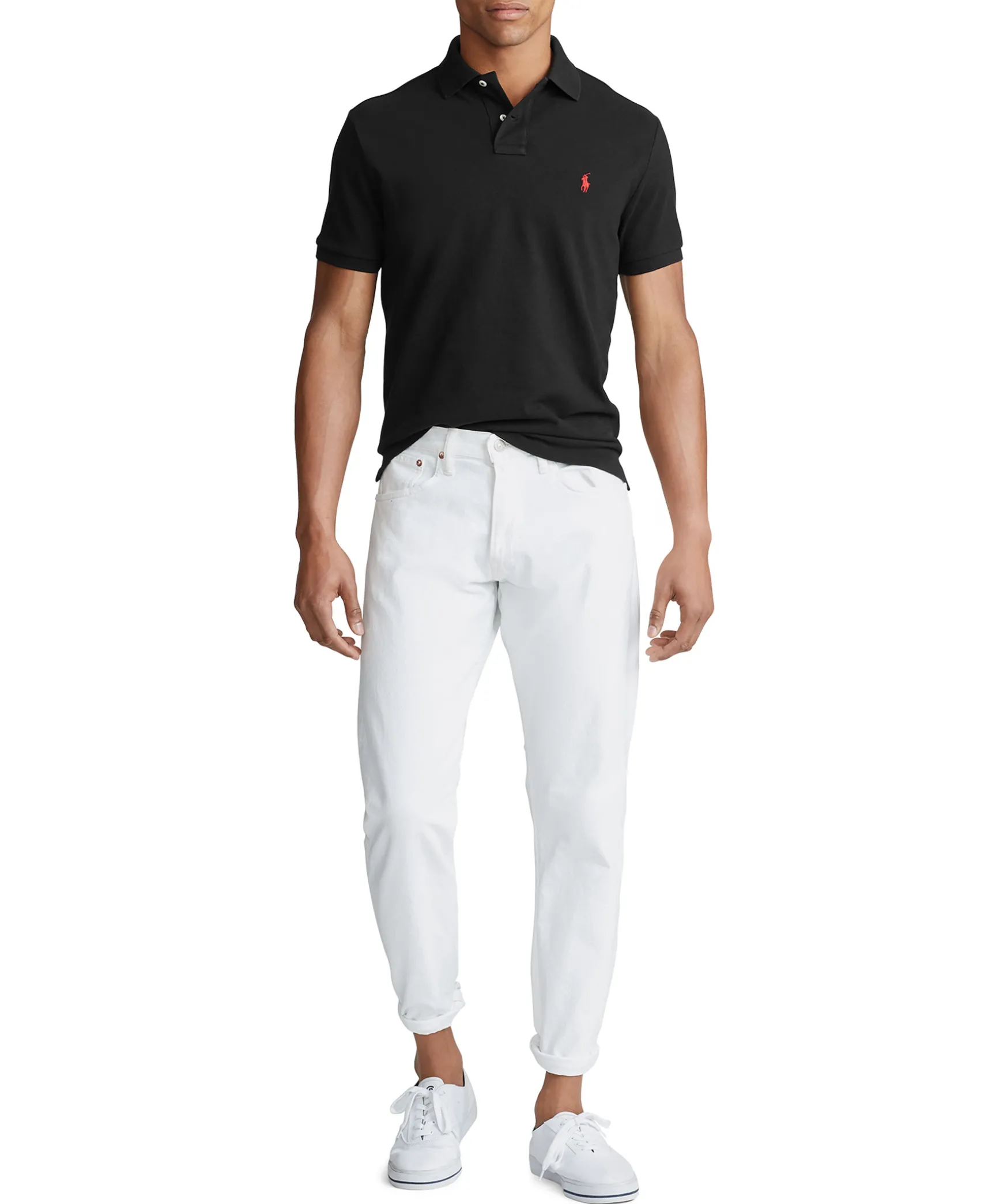 Svart Piketroja Fran Polo Ralph Lauren I Smal Passform. Tillverkad Helt I Bomull. Broderad Logga Pa Brostet.