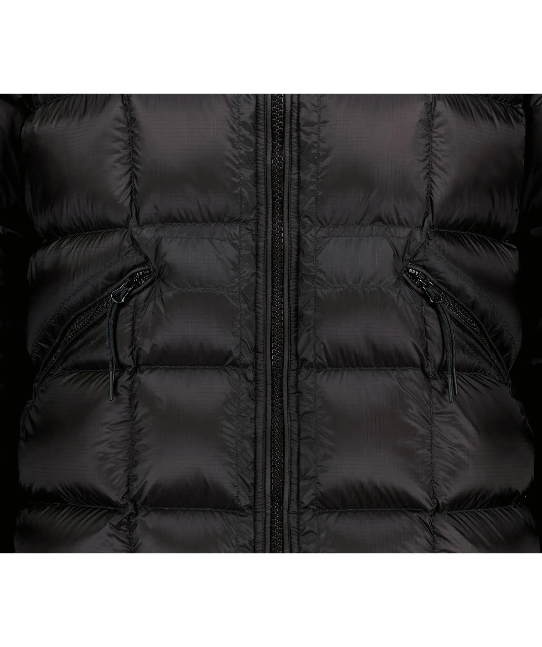 Svart Quiltad Dunjacka Fran C.P Company. Stangs Framtill Med Tvavagsdragkedja. Snedstallda Fickor Framtill Som Stangs Med Dragkedja. Ficka Pa Vanster Arm Som Stangs Med Dragkedja Med Bricka Och Logotyp. Elastisk Resar Vid Armslut. Utvikbar Luva I Kragen. Dragsko Vid Jackslut.