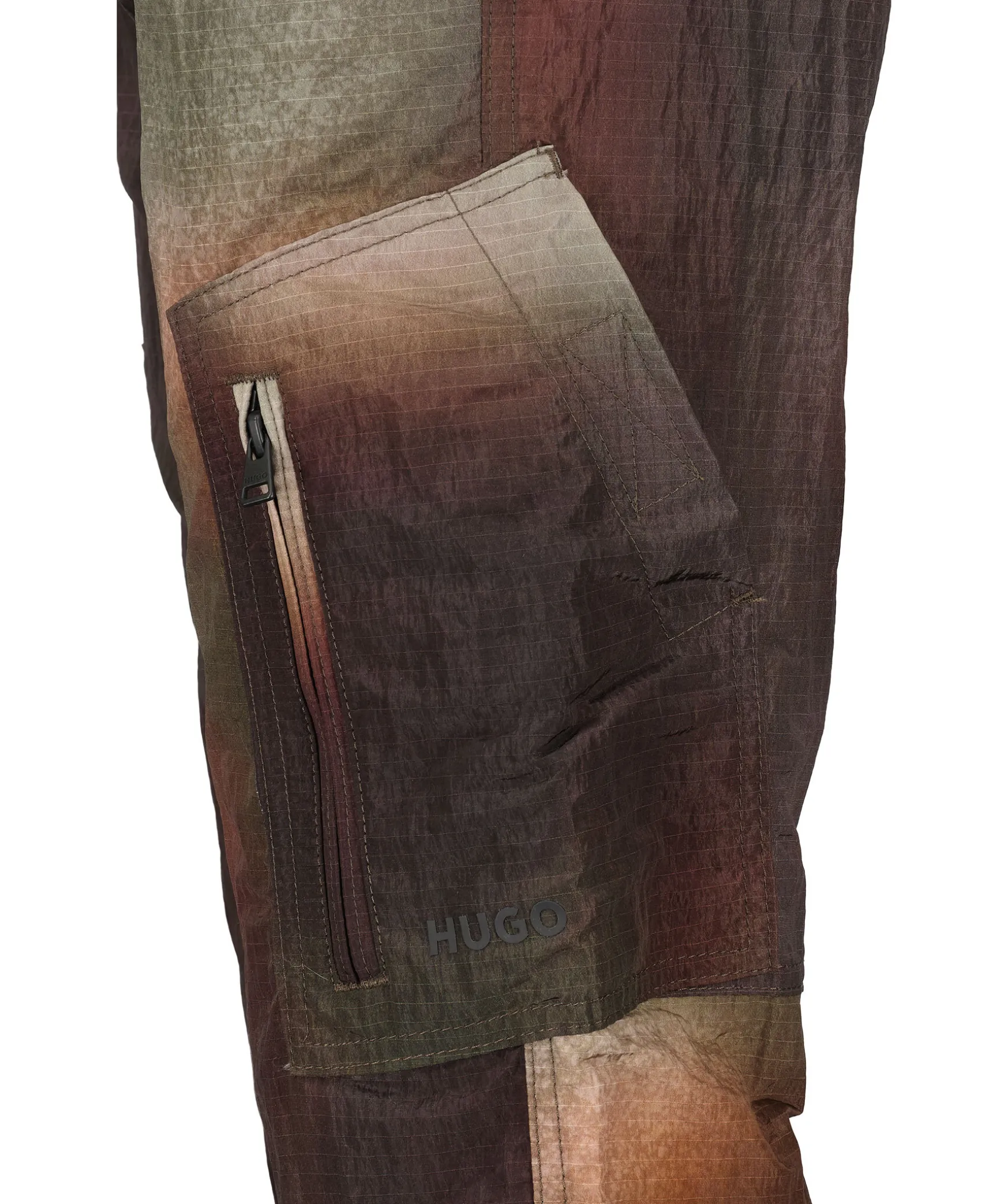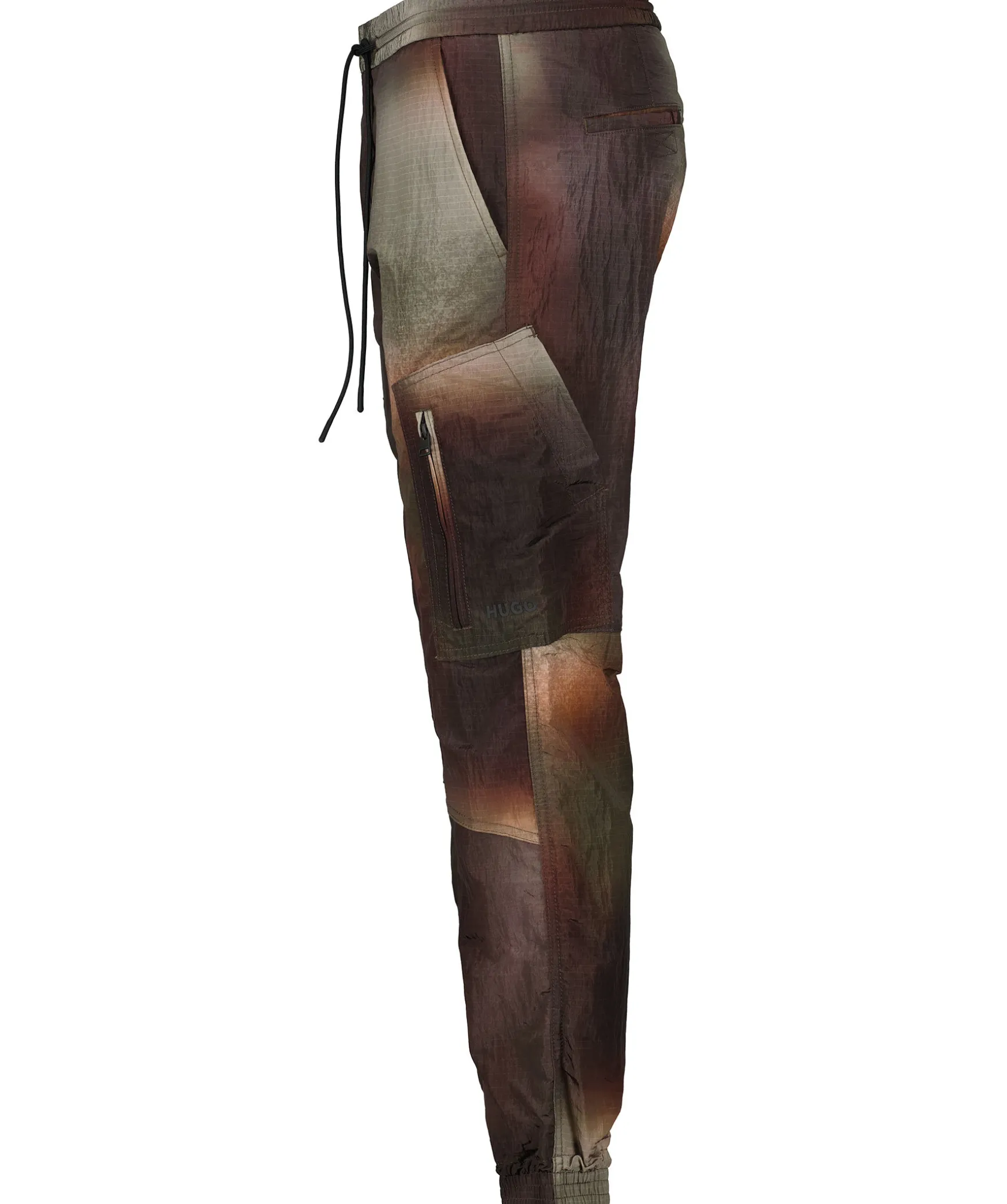 Flerfargad Byxa I Gron Och Lila Toner Fran Hugo. Byxan Har Tva Muddar Vid Benslut. Tva Framfickor Och Tva Fickor Pa Vardera Lar. Gummi Logotyp Pa Vanster Ben. Tva Bakfickor. Stretchig Midja Med Snorning.