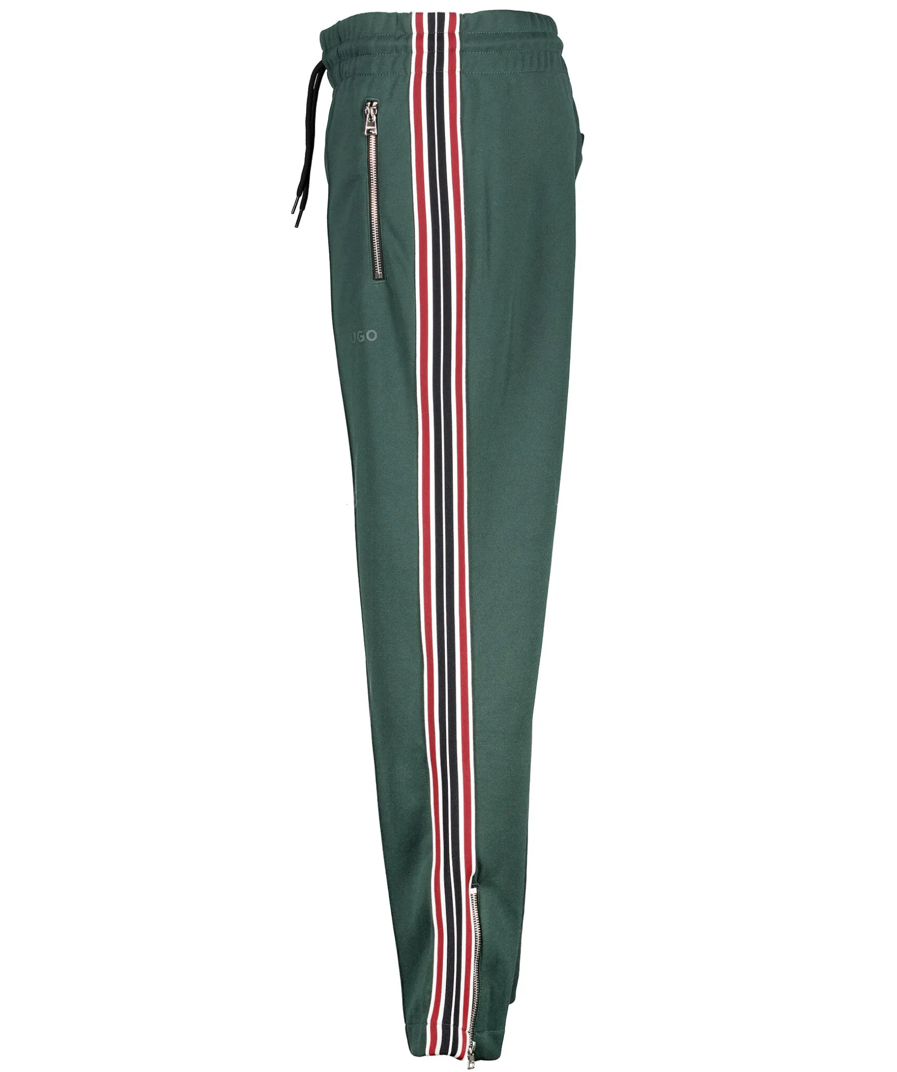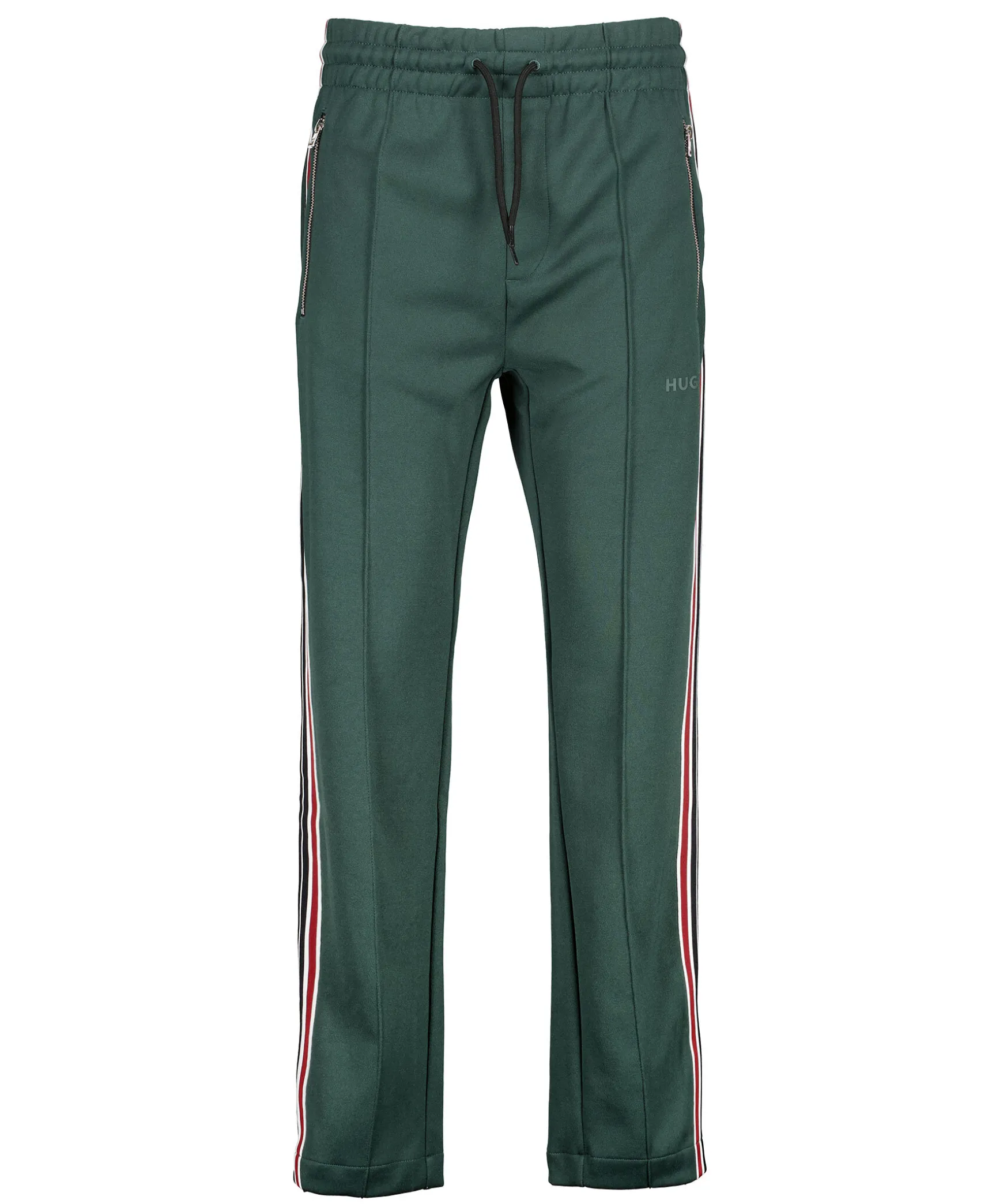 Grona Tracksuit Byxor Fran Hugo. Revarer I Vitt, Svart Och Rott Langst Byxbenen. Dragsko I Midjan. Tva Fickor Framtill Med Dragkedja Samt En Passpoalficka Baktill. Gummerad Logotyp Pa Vanster Lar. Dragkedja Vid Benslut.