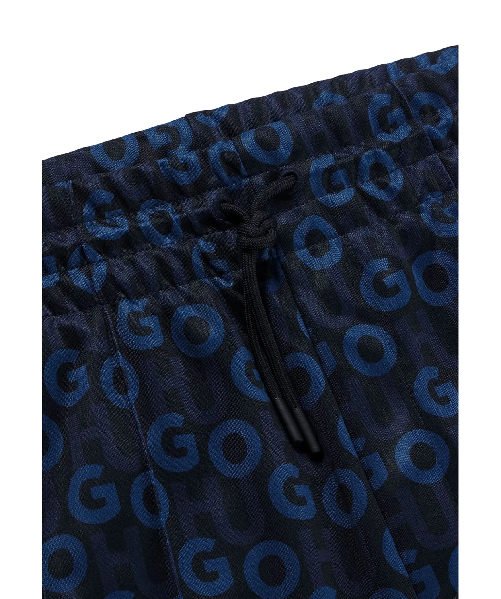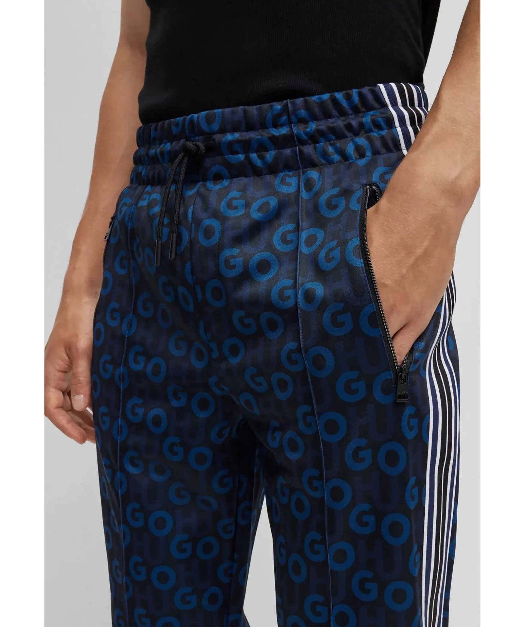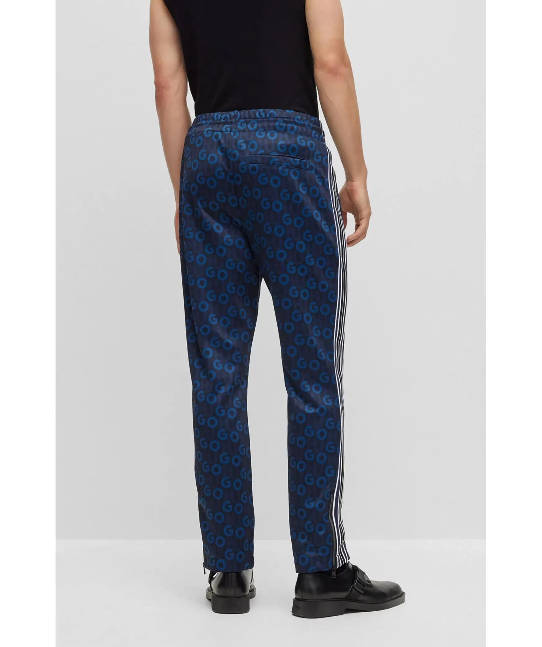 Bla Monstrade Tracksuit Byxor Fran Hugo. Resar Och Dragsko I Midjan. Tva Fickor Framtill Som Stangs Med Dragkedja, En Bakficka. Dragkedja Vid Benslut.