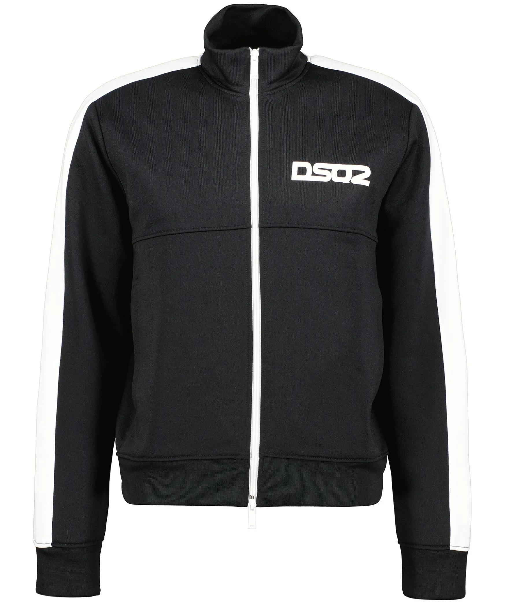 Svart Tracksuit Jacka Fran Dsquared2. Stangs Framtill Med Tvavagsdragkedja. Vita Revarer. Gummerad Logotyp Pa Vanster Brost. Tva Fickor Framtill Pa Magen. Ribbstickad Mudd Vid Kragen, Arm- Och Plaggslut.