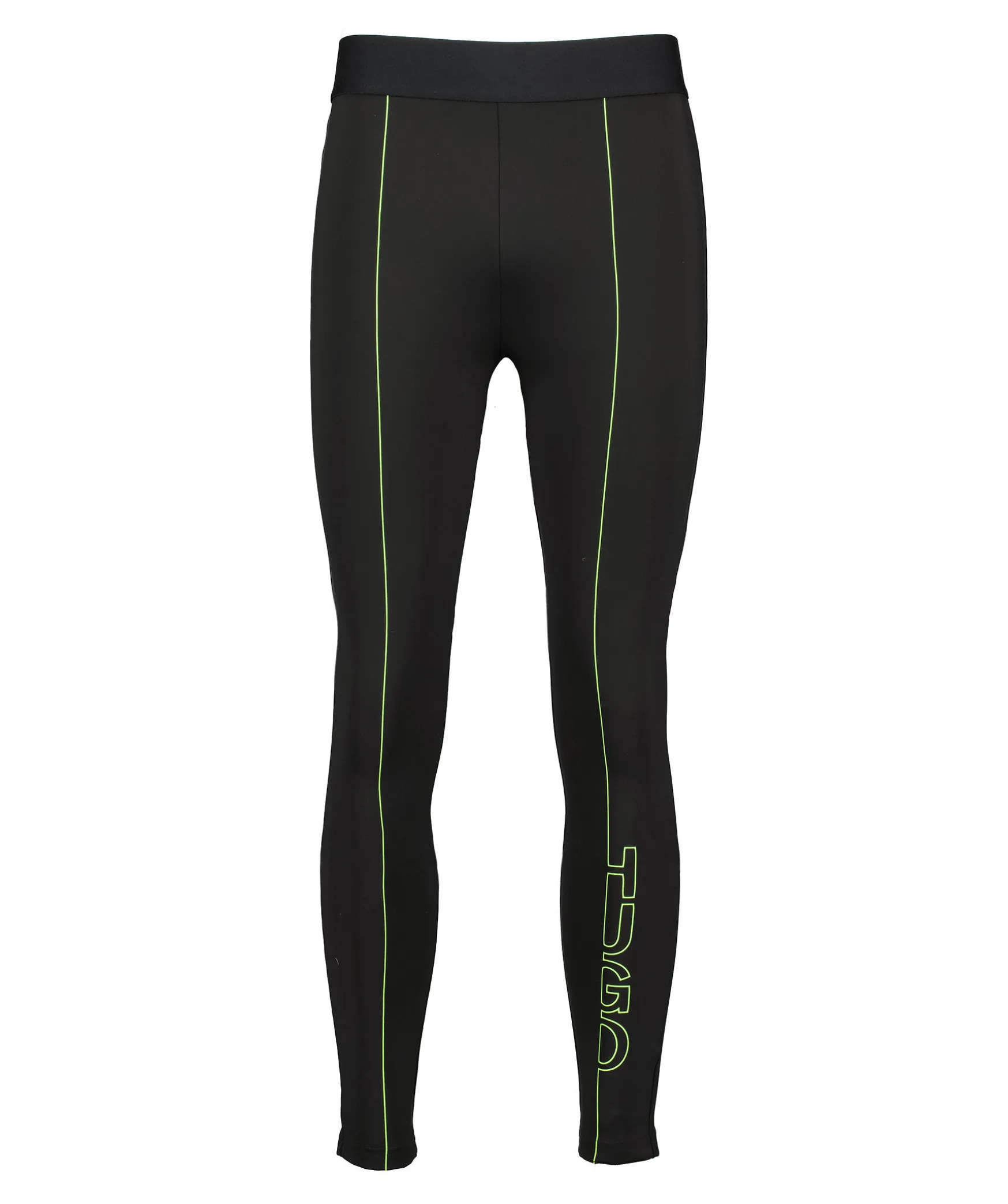 Svarta Traningstights Fran Hugo. Bred Resar I Midjan. Detaljer I Tryckt Neonfarg. Dragkedjor Vid Benslut. Liten Innerficka.