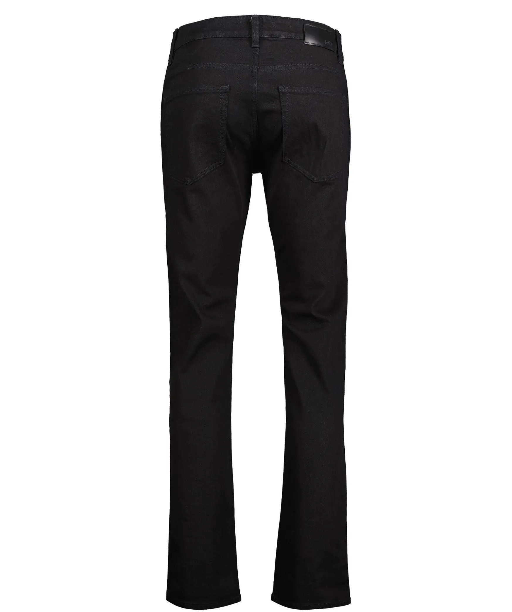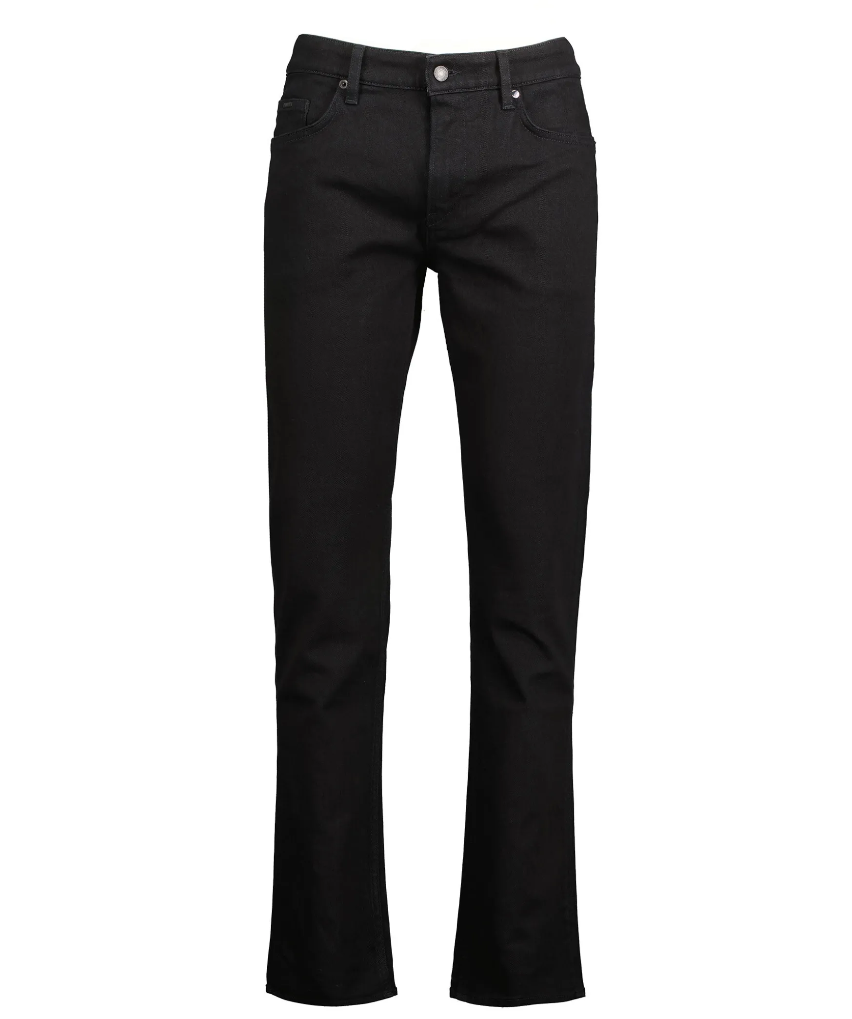 Svarta Jeans Med Stretch Fran Boss Black I Slim Fit Modell. Normalhog Midja, Raka Byxben. Femficksmodell, Gylf Med Dold Dragkedja Och Knapp. Hallor For Balte.