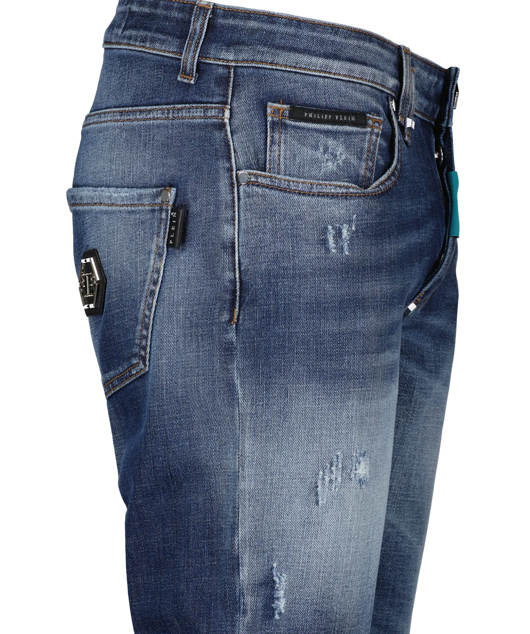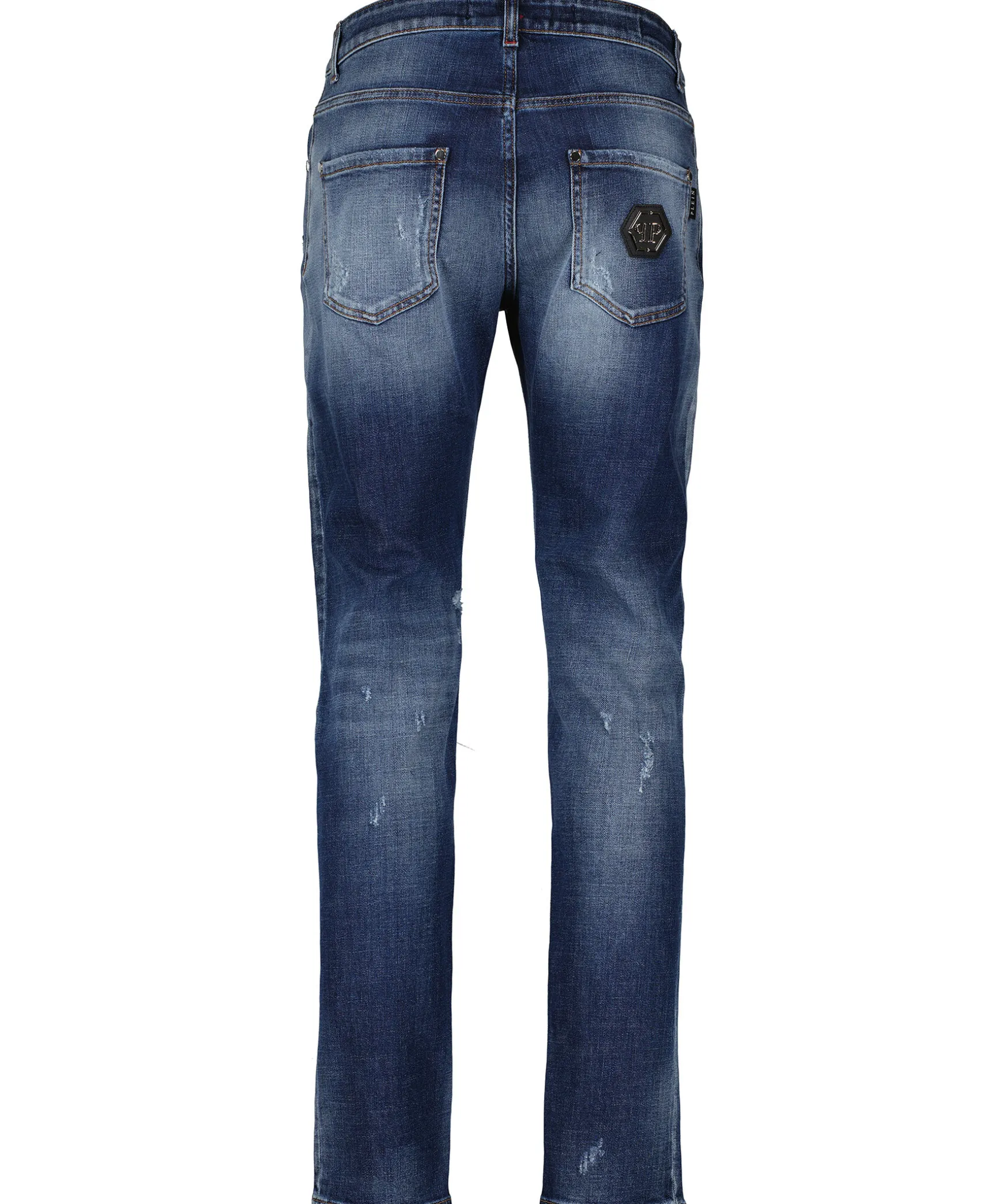 Blaa Jeans Fran Philipp Plein. Stretch-Stentvattade Jeansbyxor Med 5 Fickor. Patch-Logotyp Med Detalj I Metall Pa Baksidan. Enkel Knapp-Logotyp I Metall I Fram. Passform: Super Straight. Tyglappslogotyp Vid Gylfen. Tillverkade I En Bomullsblandning.