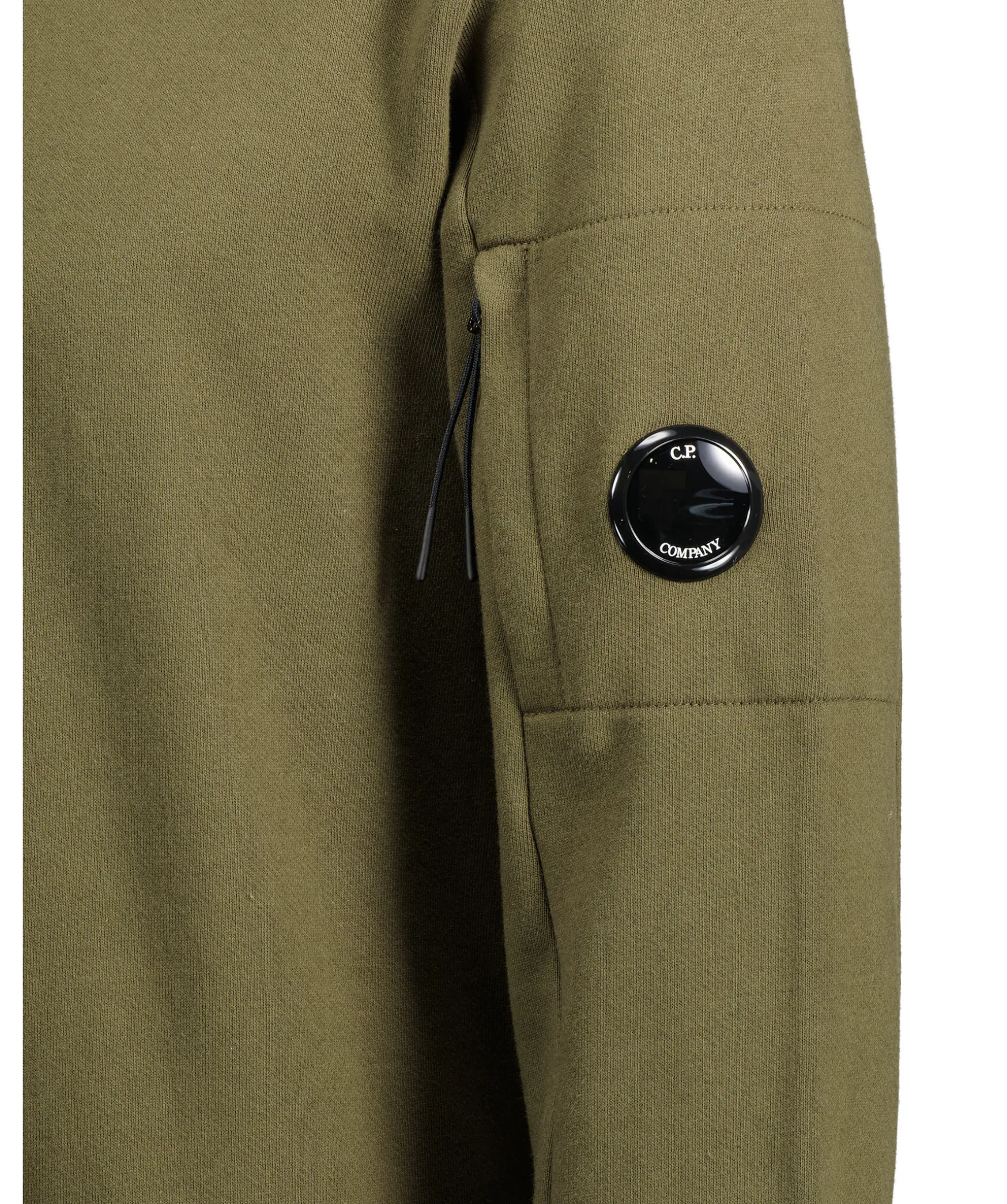 Olivgron Crewneck Med Rund Hals Fran C.P Company. Trojan Har En Rund Patch I Plast Med Logotyp Pa Vanster Arm Med En Dragkedjeficka. Tillverkad I Diagonalt Upphojd Fleece, Ett Mellanviktsalternativ I Bomull Med Loopback Som Kombinerar Absolut Komfort Med En Rejal Och Slitstark Kansla. Ribbstickade Armslut, Fall Och Hals Samt Gummerad Logotyp Detalj Pa Kragen Baktill.