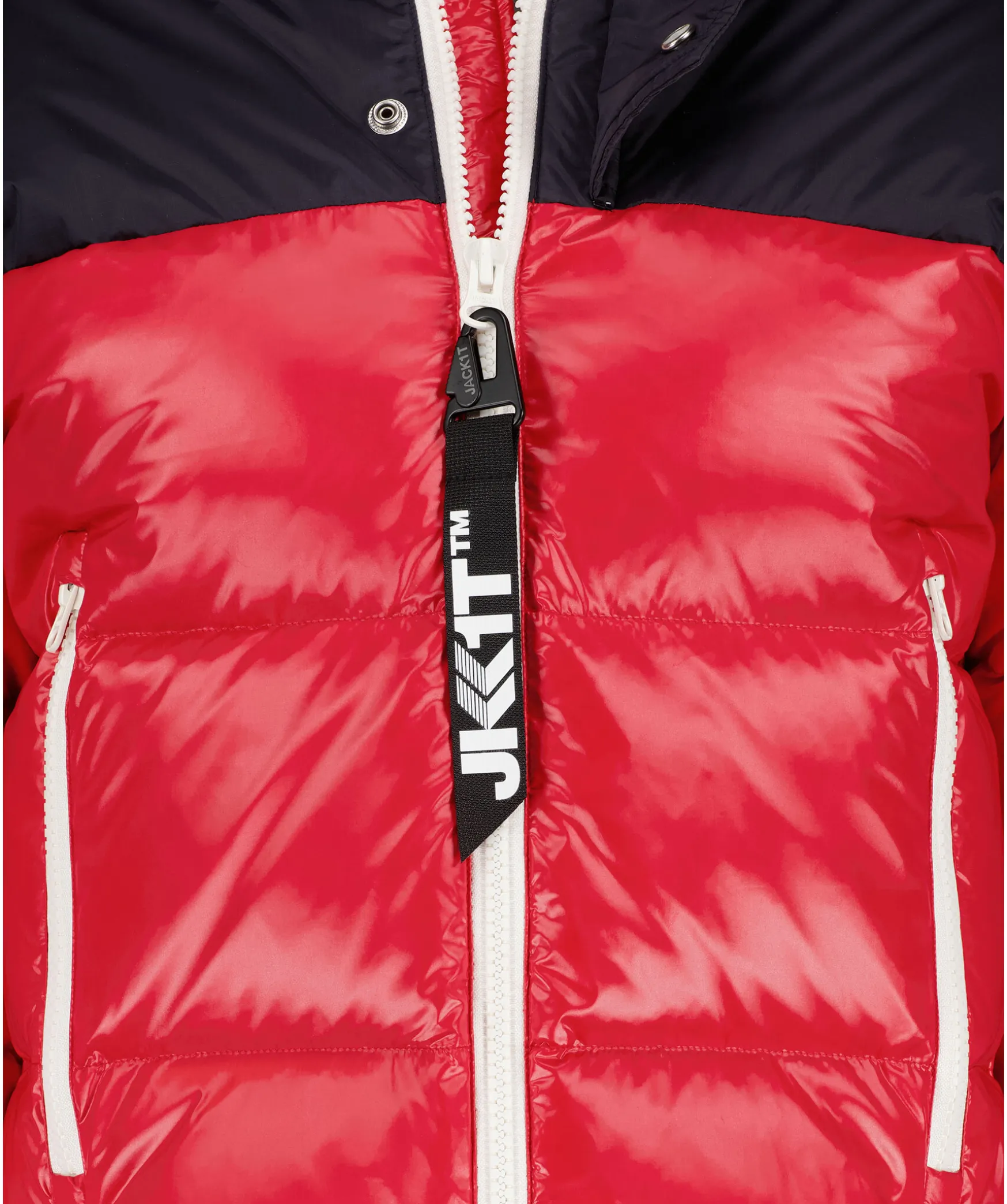 Rod Quiltad Dunjacka Fran Jack1T. Svart Kontrasttyg Stangs Framtill Med Dragkedja Och Tryckknappar Vid Kragen. Tva Fickor Framtill Med Dragkedja. Innerficka Som Stangs Med Dragkedja. Ribbstickade Muddar Vid Armslut. Dragsko Vid Jackslut. Broderad Logotyper Framtill Vid Kragen, Baktill Pa Hoger Axel. Gummerad Patch Med Logotyp Pa Hoger Arm. Jackan Ar Tillverkad I Vattenavstotande Material.