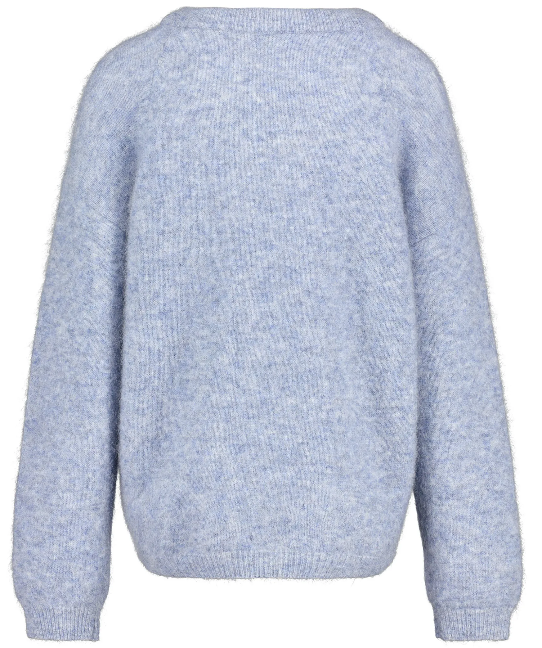Ljusbla Melerad Stickad Troja I Mohair Fran Acne Studios. Rundad Halsringning. Avslappnad Passform. Tillverkad I Mohair Blandning. Ribbstickad Mudd Vid Armslut Och Halsringning.
