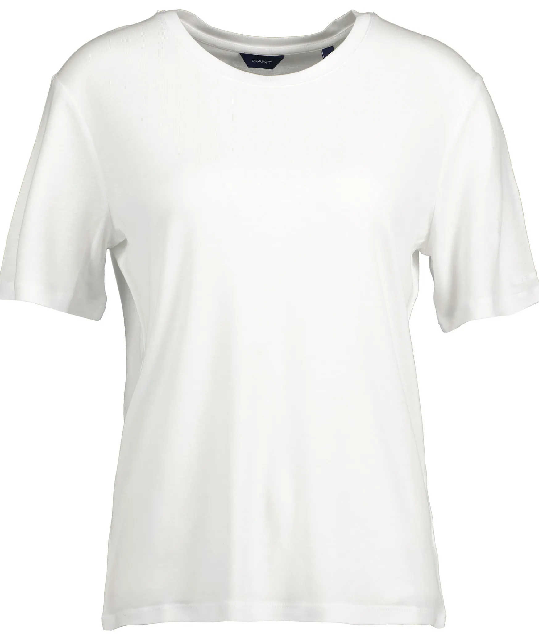 Vit T-Shirt Fran Gant Med Rundad Halsringning. Halvtransparent Material Tillverkat I 100% Lyocell.