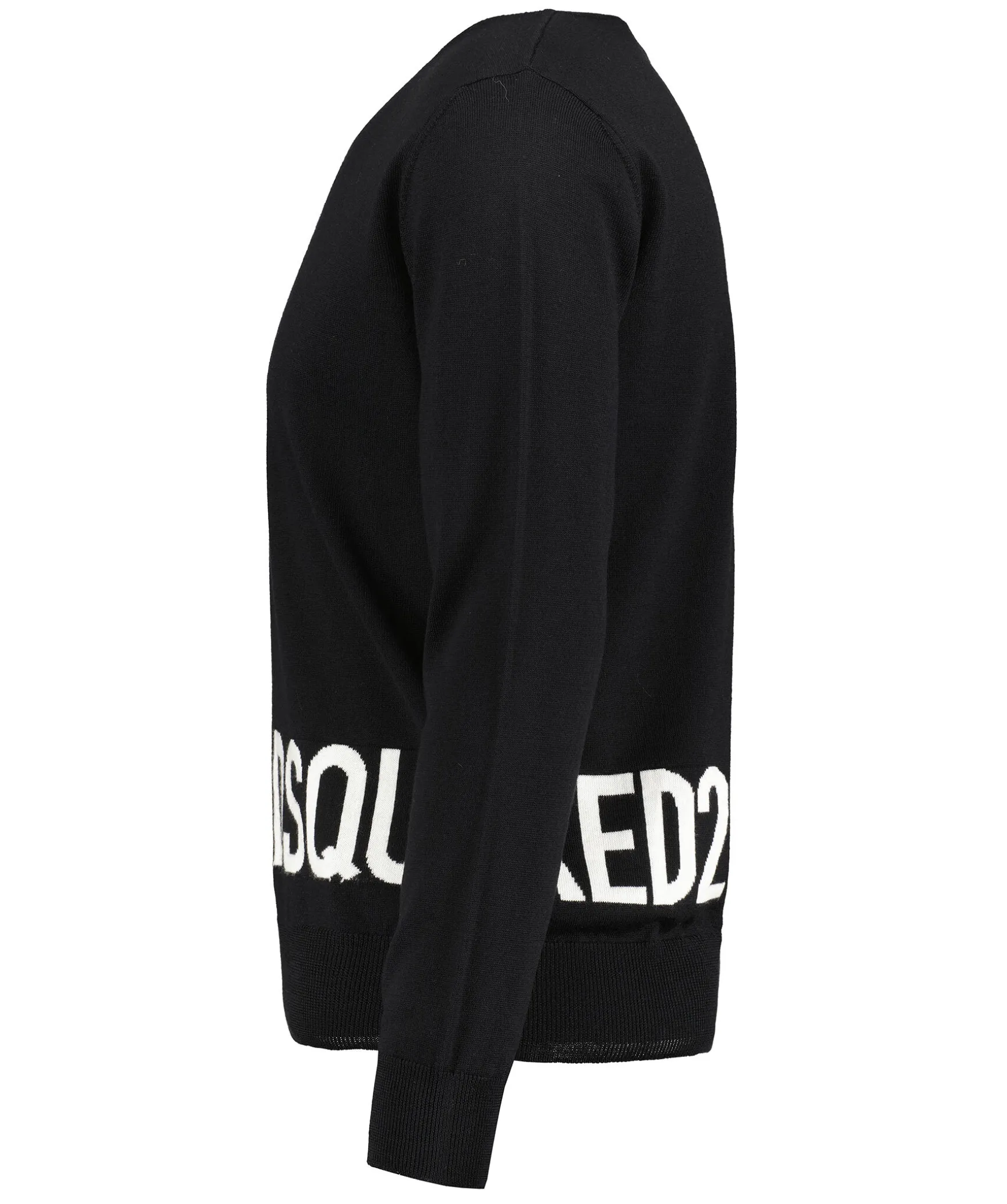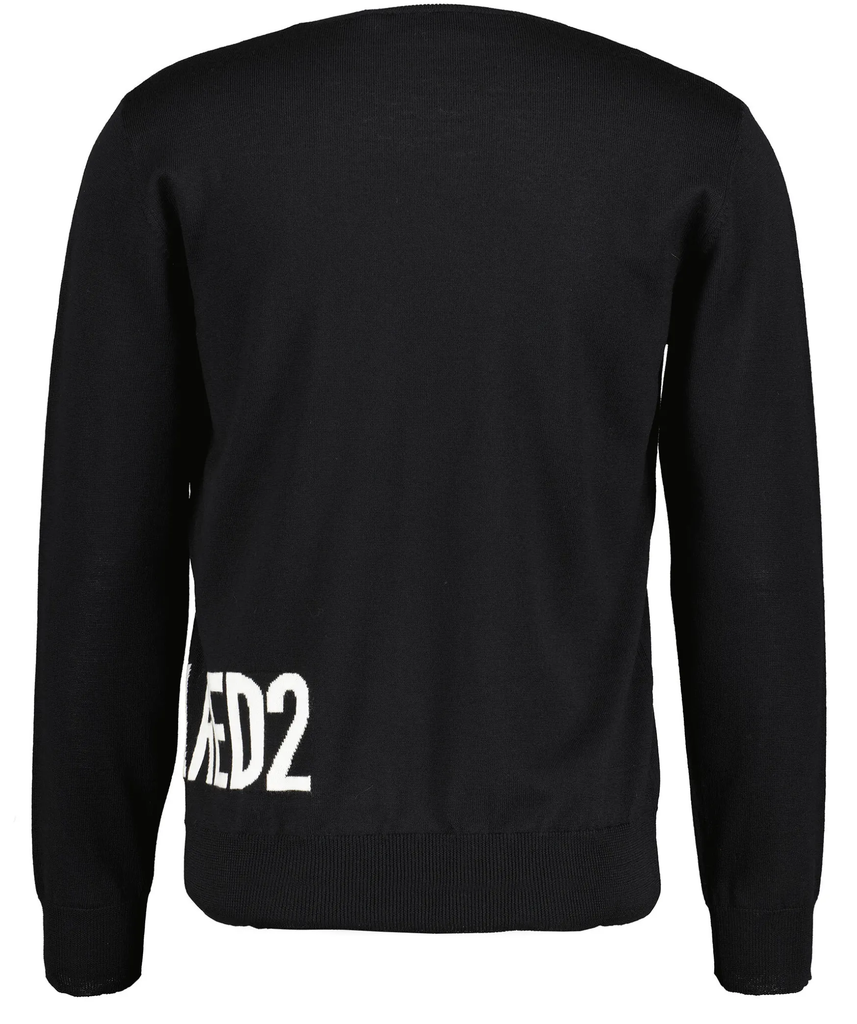 Svart Finstickad Troja Fran Dsquared2. Rundad Halsringning. Stickad Logotyp I Vitt. Ribbstickad Vid Kragen, Arm -Och Plaggslut. Tillverkad I 100% Lammull.