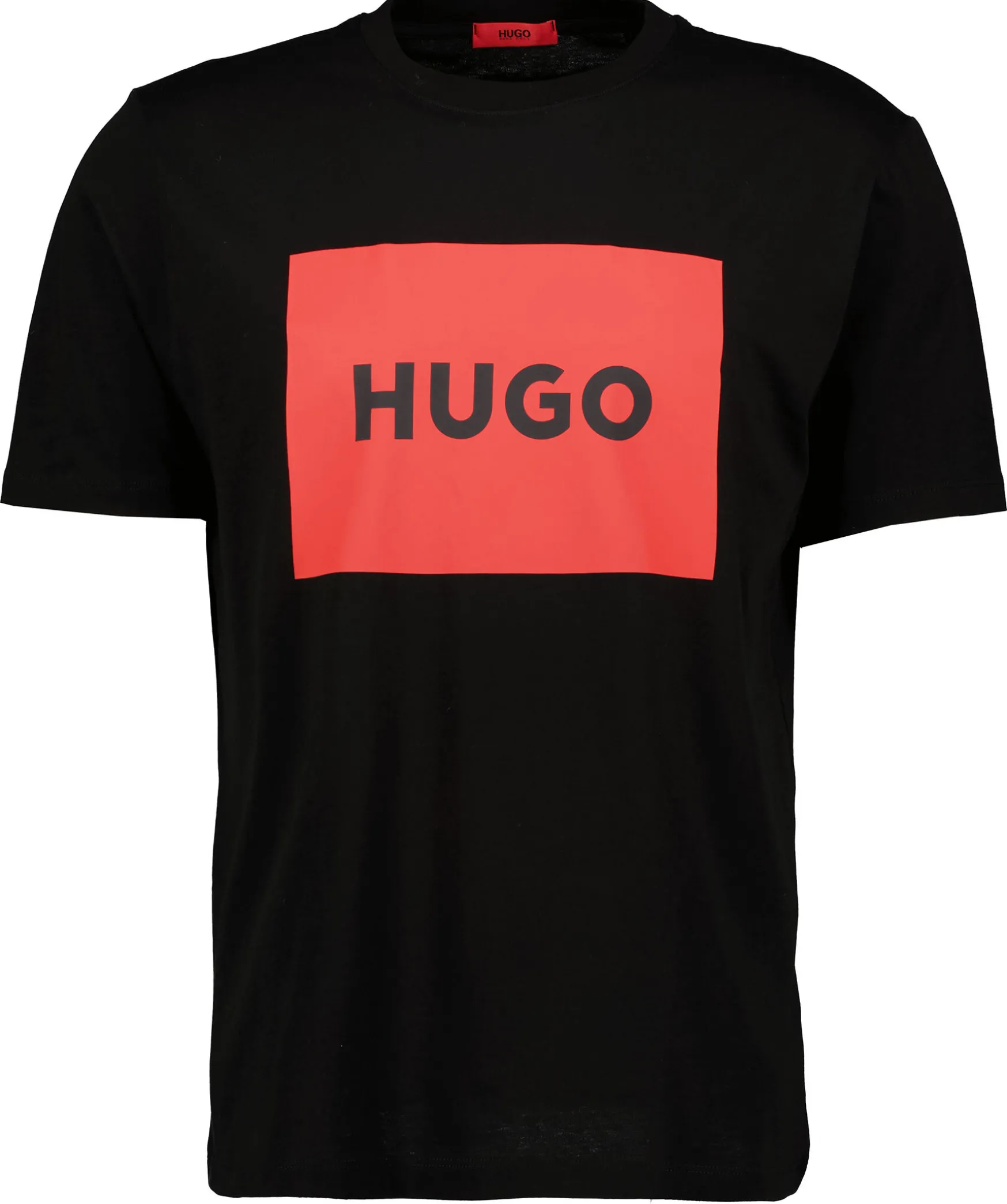 Svart T-Shirt Fran Hugo. Stort Tryck Med Logotyp I Rott Over Brostet. Tillverkad I 100% Bomull. Rundad Halsringning.