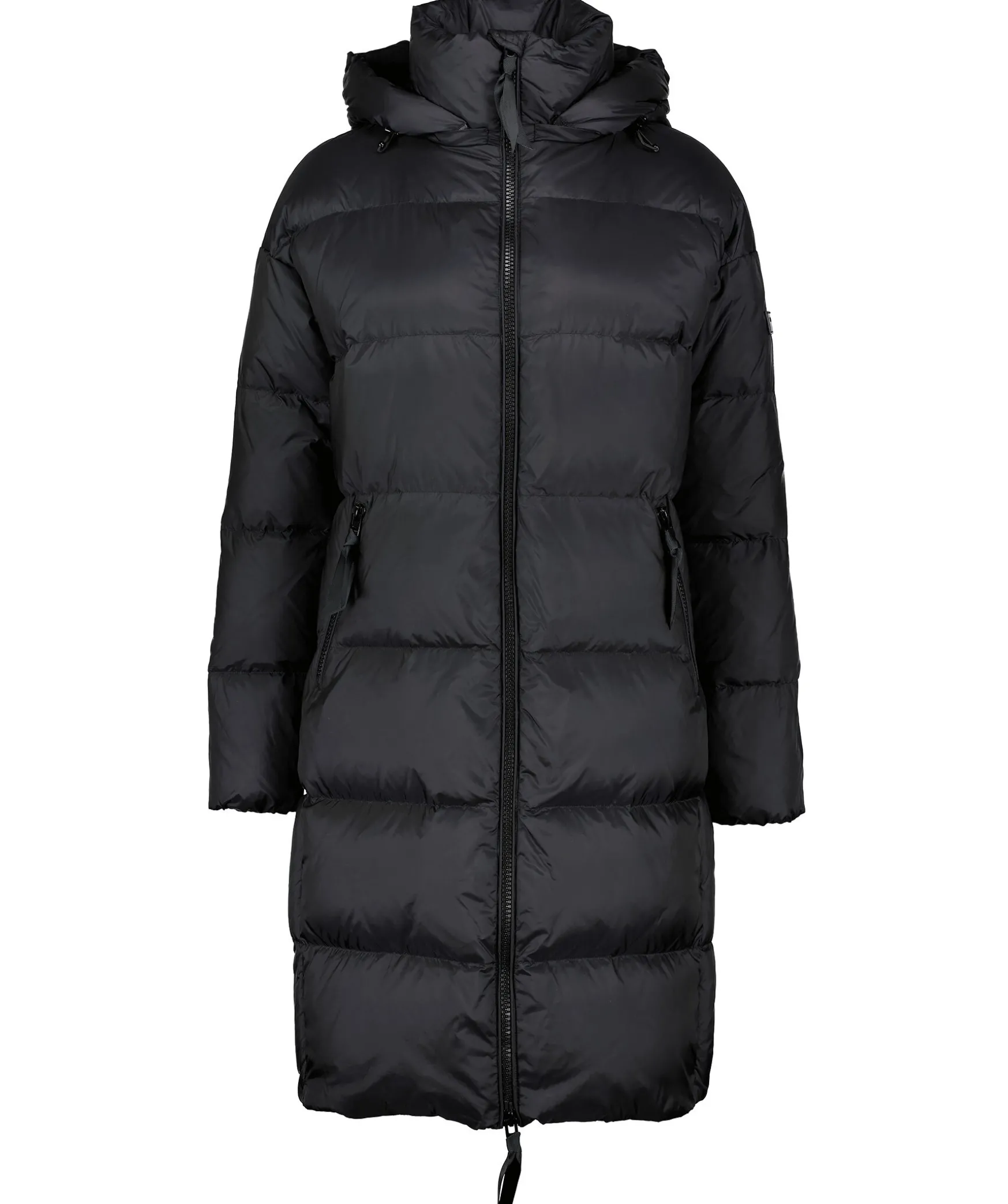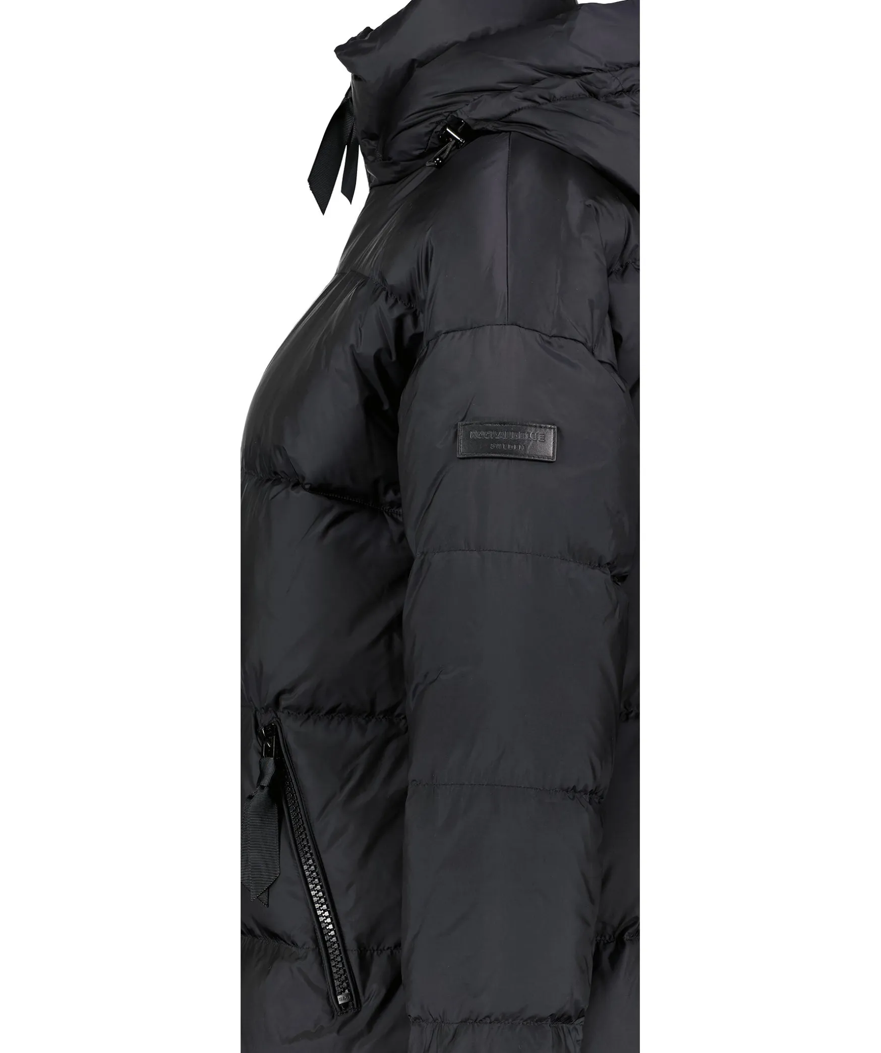 Svart Dunjacka Fran Rockandblue I Lang Modell. Normal I Storlek Med Passform Som Ar Nagot Oversize. Tva Fickor Fram Och En Innerficka. Stangs Med Tvavagsdragkedja Och Tryckknappar. Logga I Lader Pa Vanster Arm, Avtagbar Luva Och Hog Krage. Yttertyg I Nylon Och Har Ett Foder I Dun.