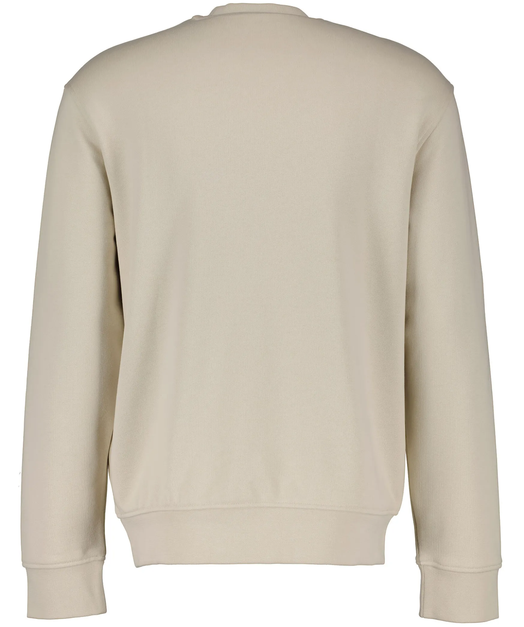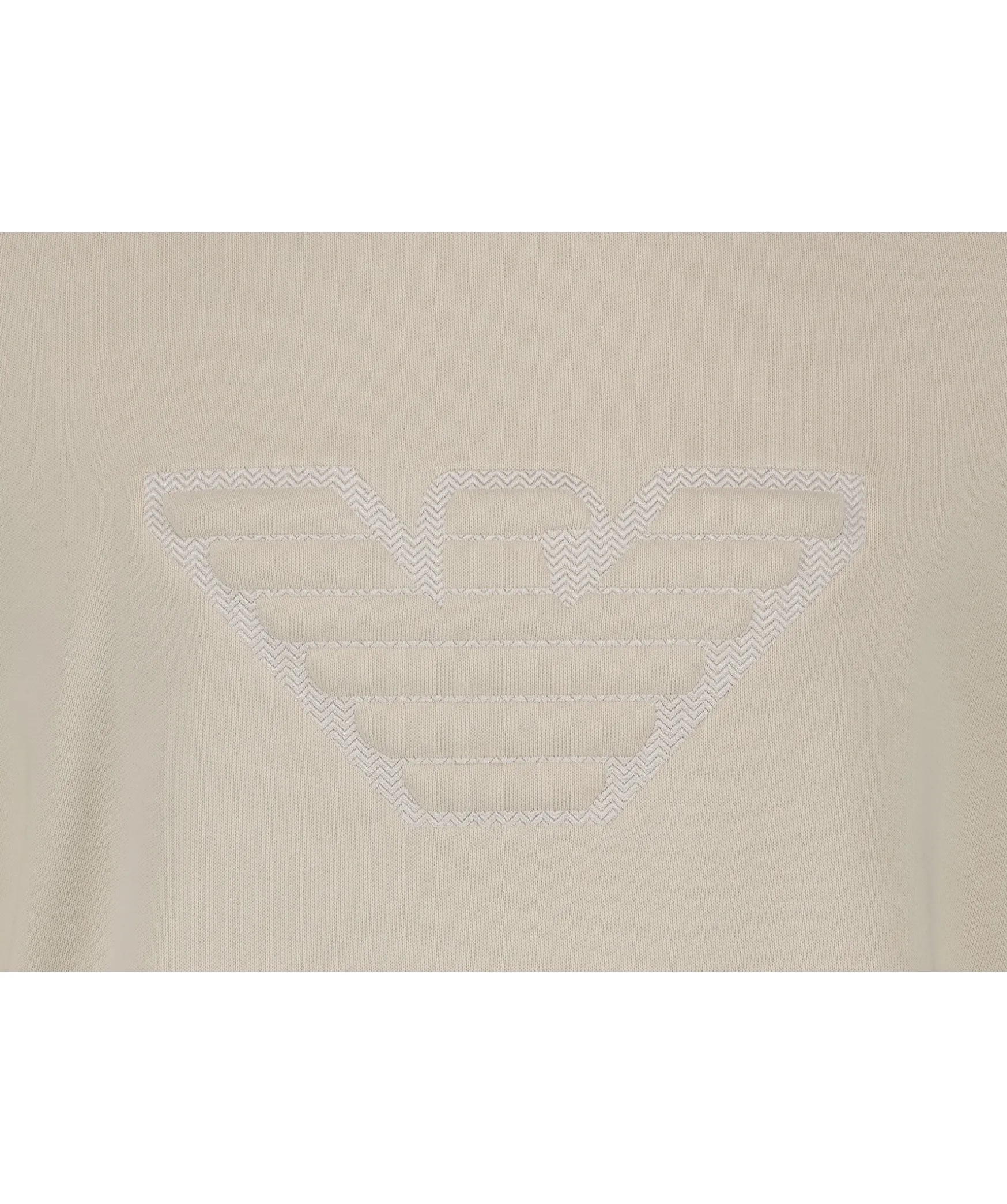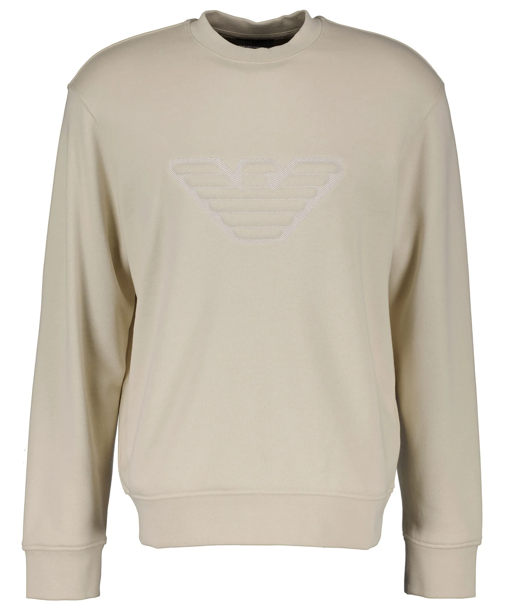 Benvit Sweatshirt Fran Emporio Armani. Tillverkad I 100% Bomull. Ribbstickad Halsringning Samt Arm- Och Plaggslut. Stor Broderad Logotyp Pa Brostet.