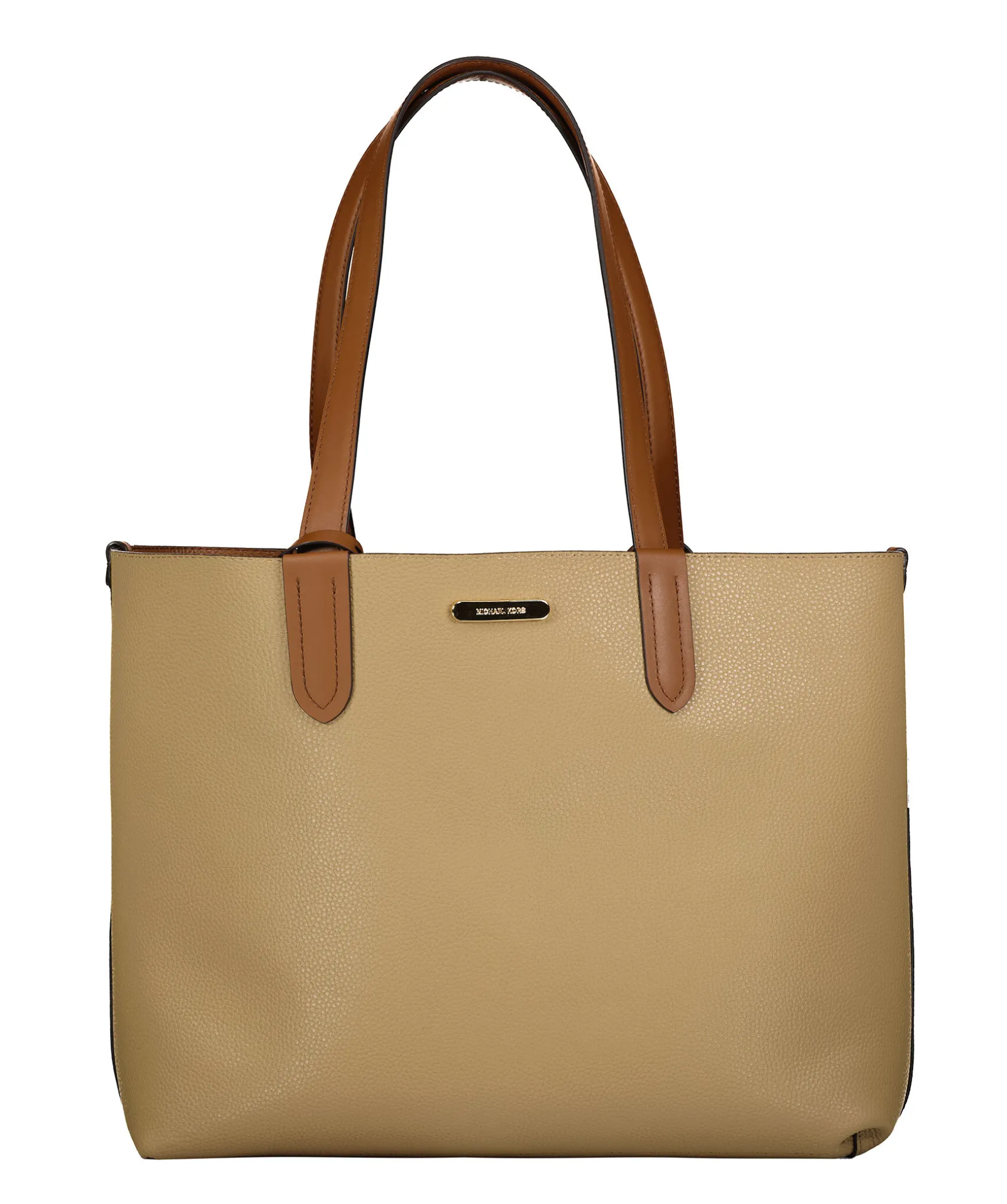 Brun Shoppingvaska I Lader Fran Michael Kors. Vaskan Ar Reversible Dar Andra Sidan Ar Beige. Guldfargad Logotyp I Metall, Kommer Aven Med En Liten Clutchvaska.