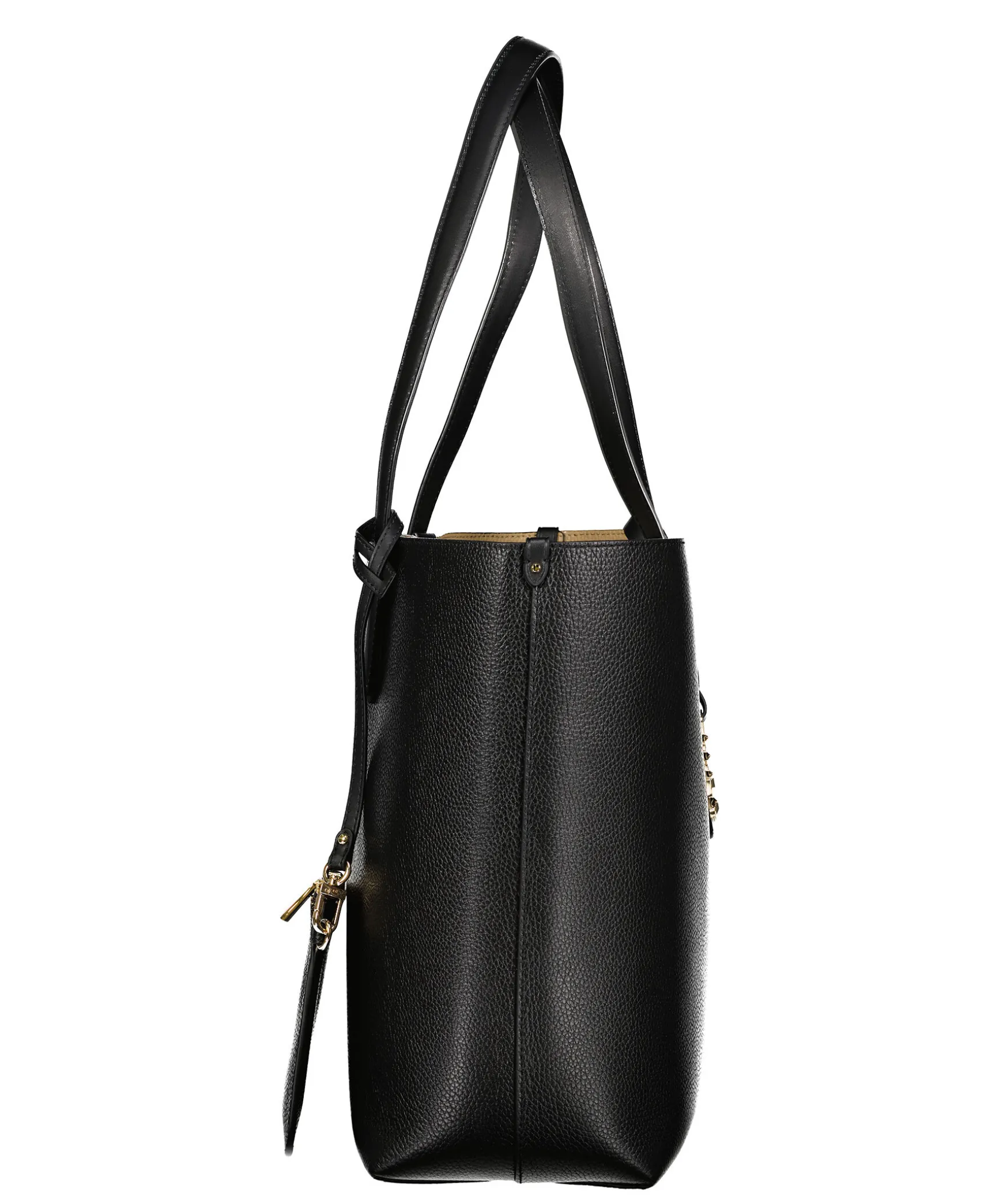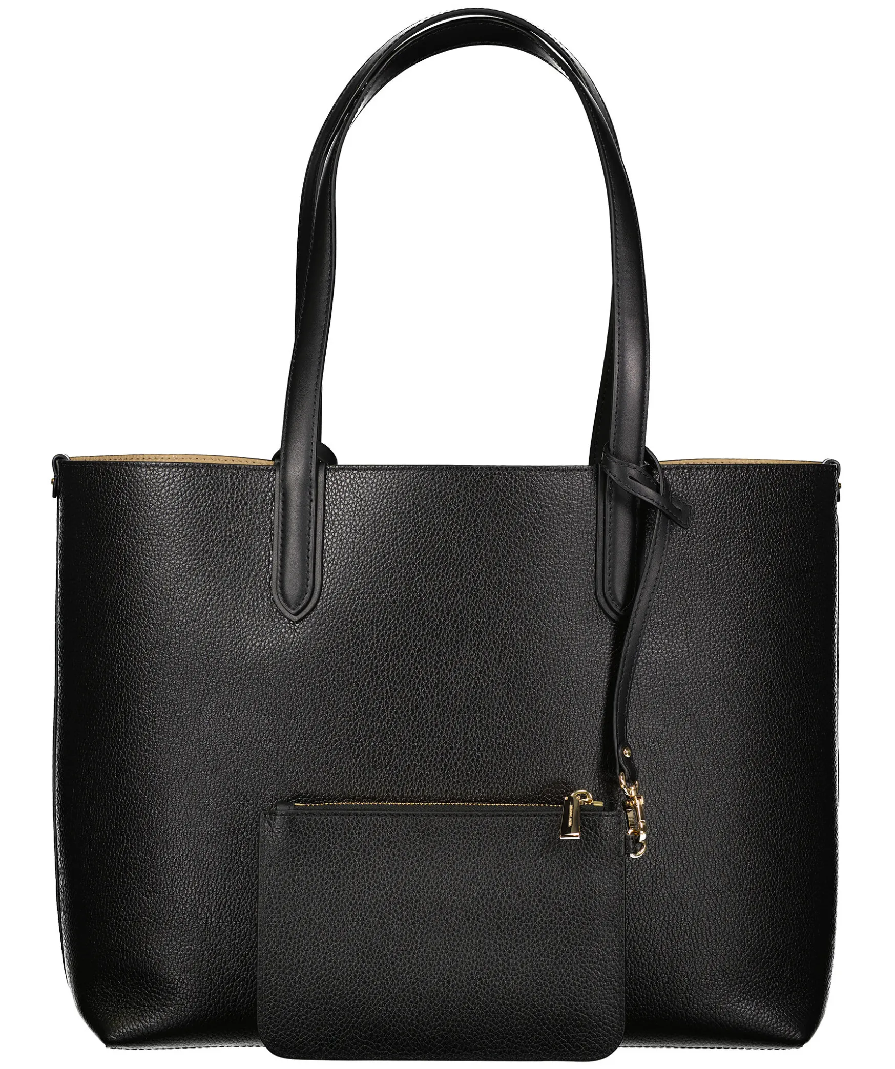 Svart Shoppingvaska I Lader Fran Michael Kors. Vaskan Ar Reversible Dar Andra Sidan Ar Beige. Guldfargad Logotyp I Metall, Kommer Aven Med En Liten Clutchvaska.