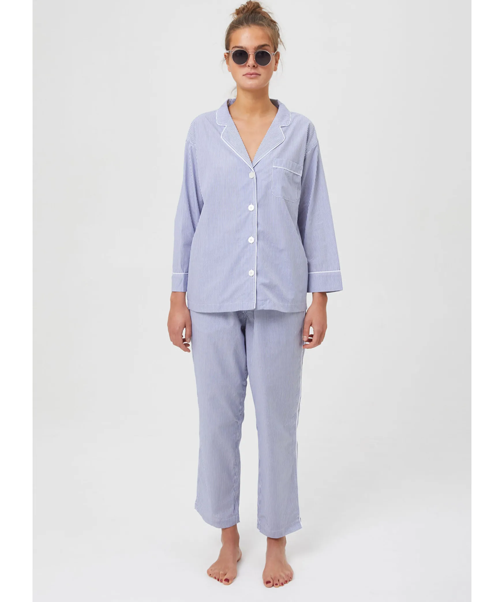 Eve Ar En Dampyjamas I 100% Bomull. Skjortan Har En Brostficka Och Byxorna Har Vita Passpoaler Med Tva Sidfickor. • 100% Bomull. • Byxa Med Resar Samt Dragsko I Midjan.• Knappning Med Knappar.• Tyg Fran Portugal. • Tillverkad I Kroatien.