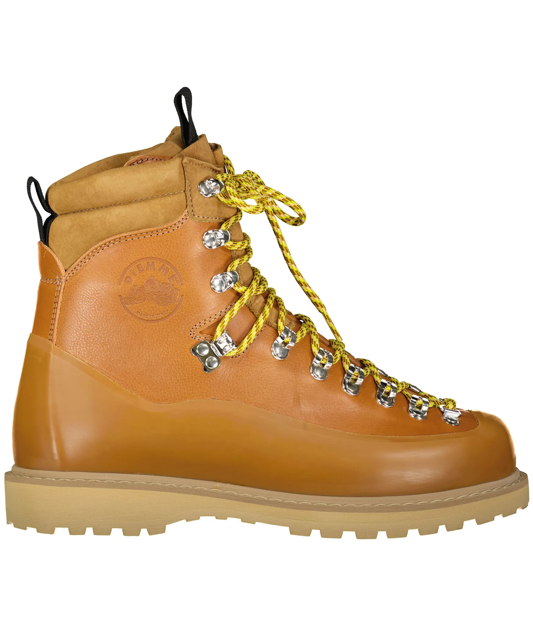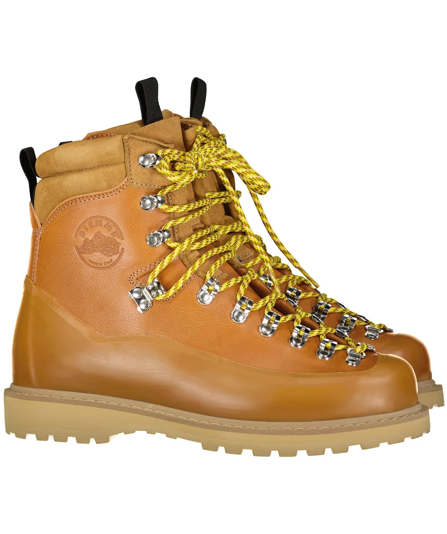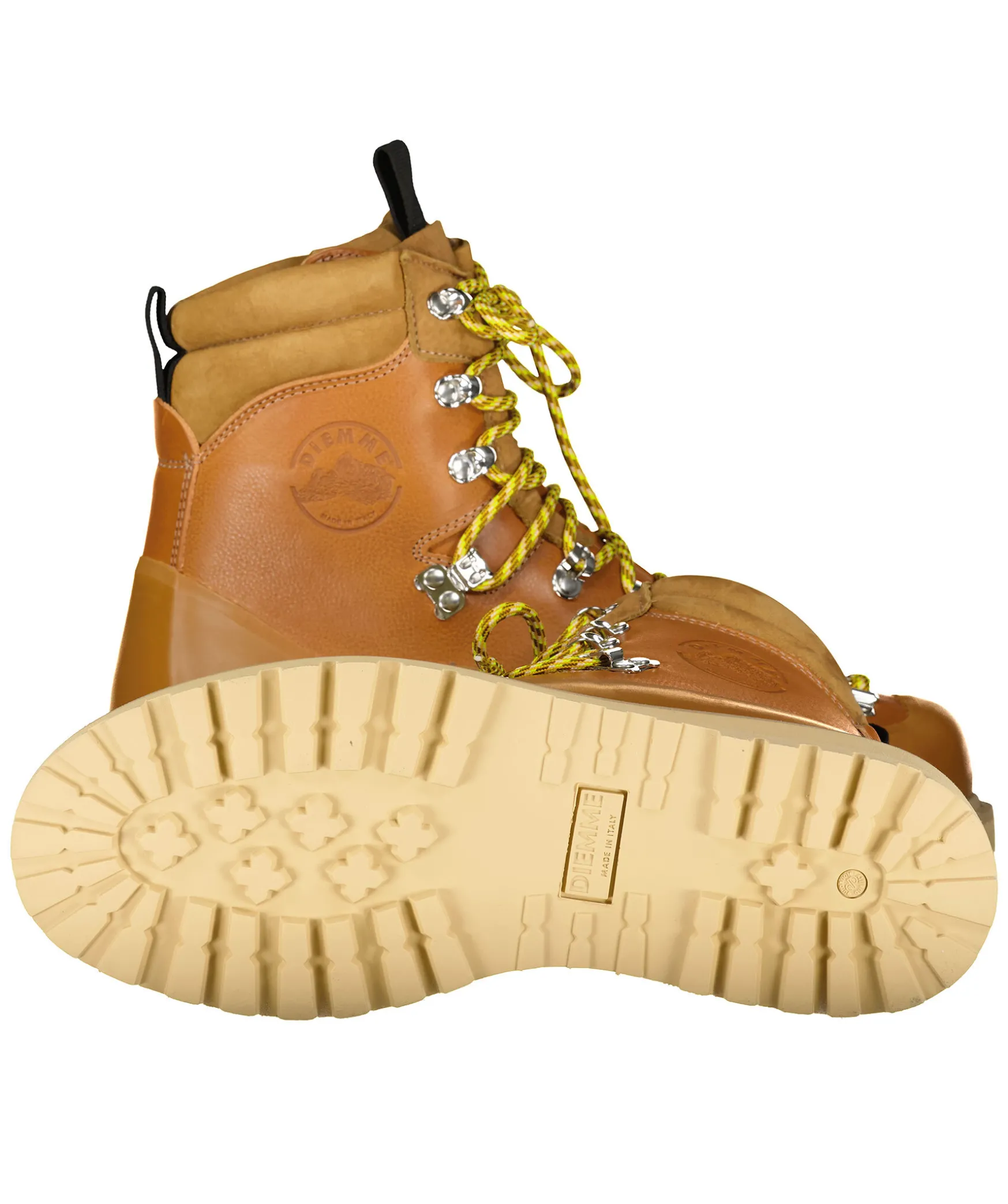 Bruna Vildmarksinspirerade Kangor Fran Diemme Tillverkade I Lader. Beige Bruna Runda Skosnoren, Tillkommer Svarta Skosnoren. Grov Sula I Beige Gummi. Stansad Logotyp Pa Skons Yttersida. Gummerad Detaljer Pa Skon. Detalj I Mocka Pa Skons Skaft.