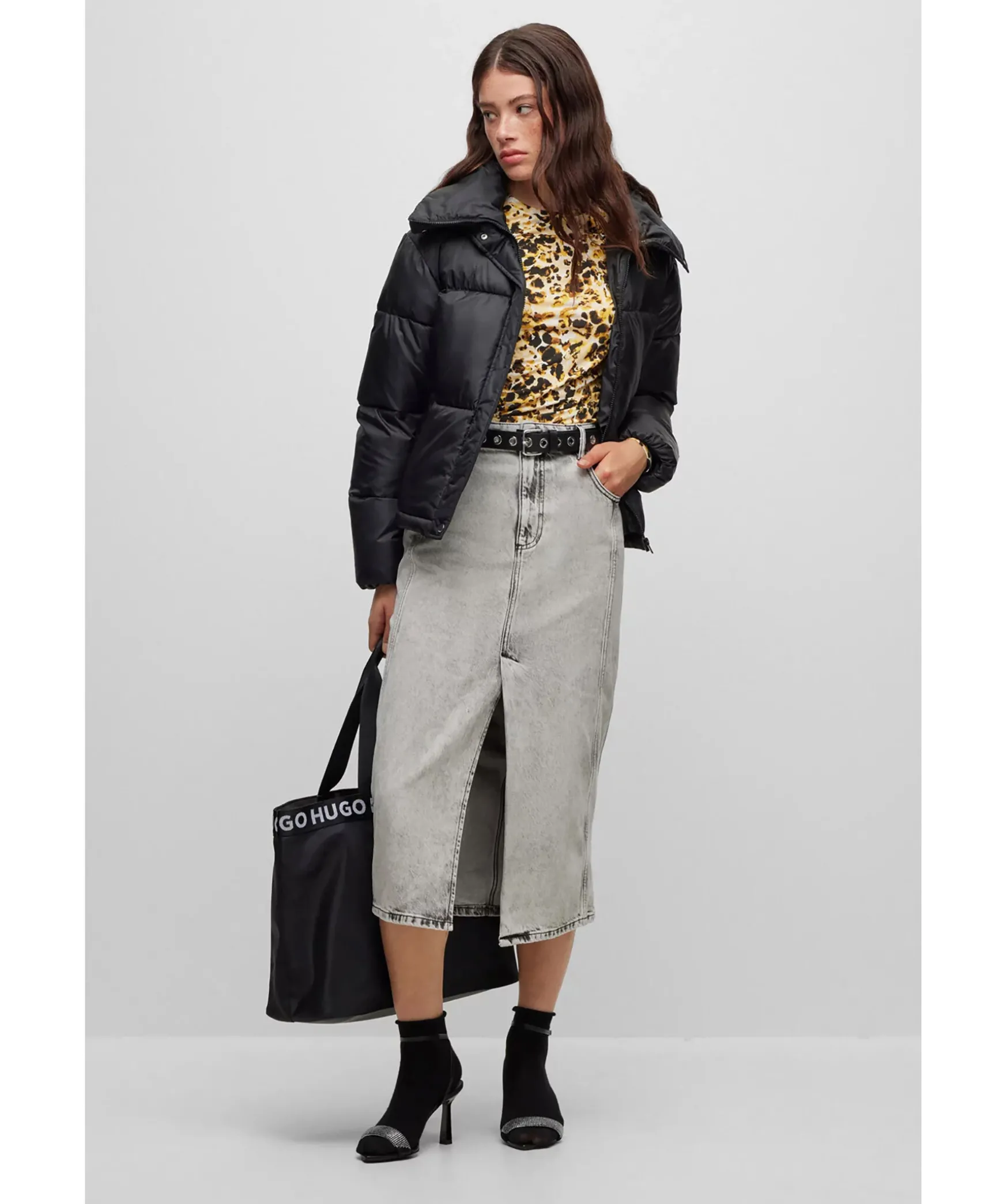 Svart Pufferjacka Fran Hugo. Stangs Framtill Med Dragkedja Och Tryckknappar. Tva Fickor Framtill. Dragsko Vid Jackslut. Patch I Gummi Med Logotyp I Nacken.