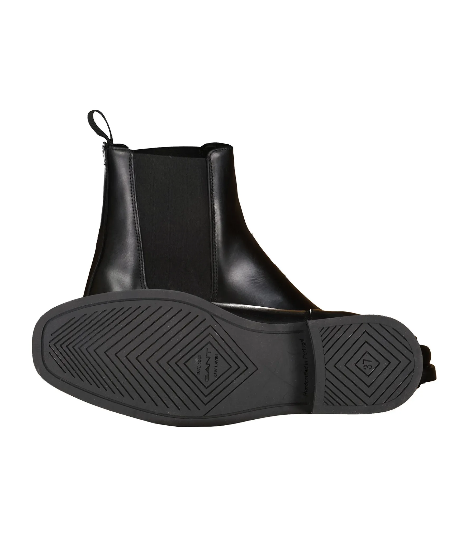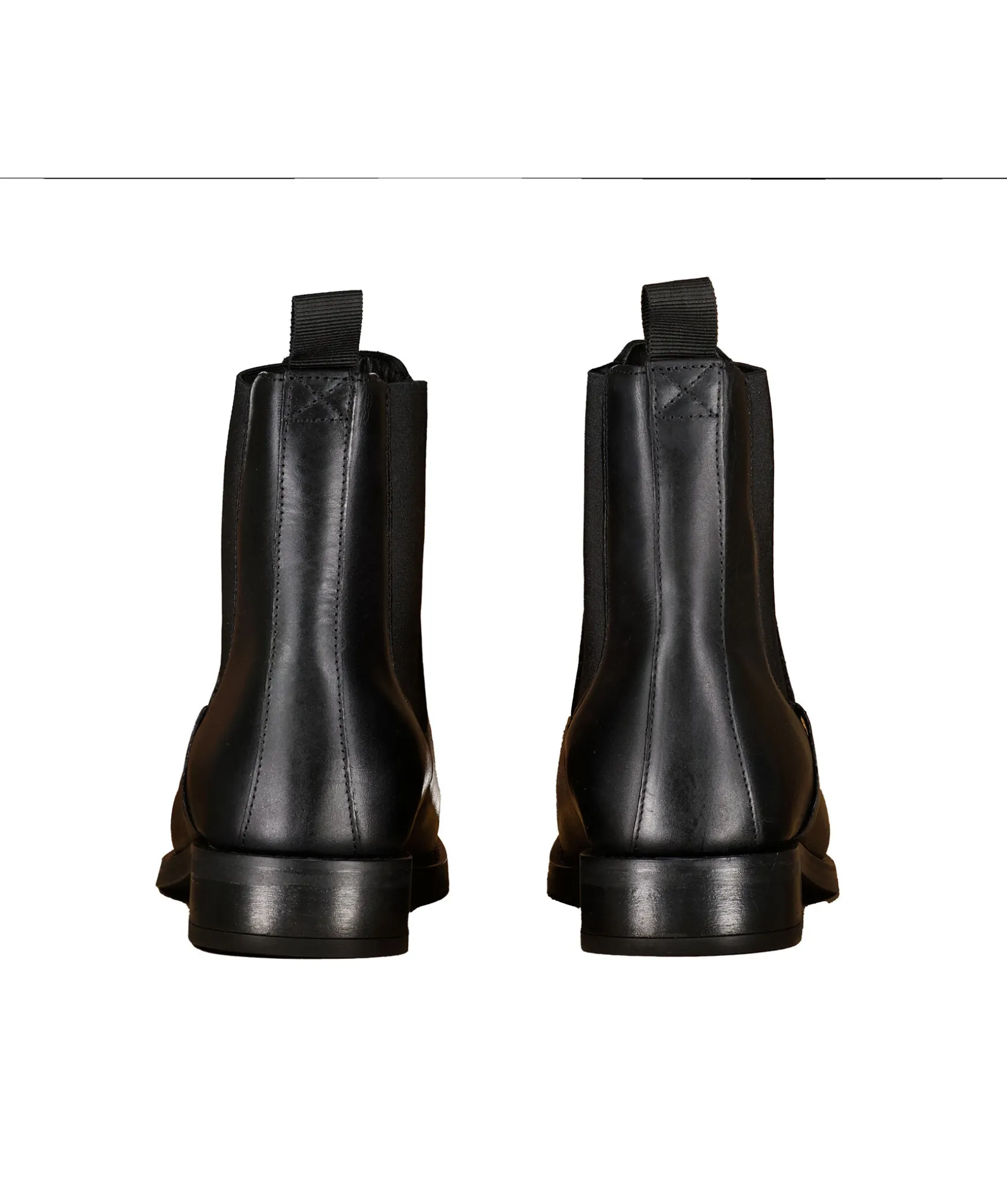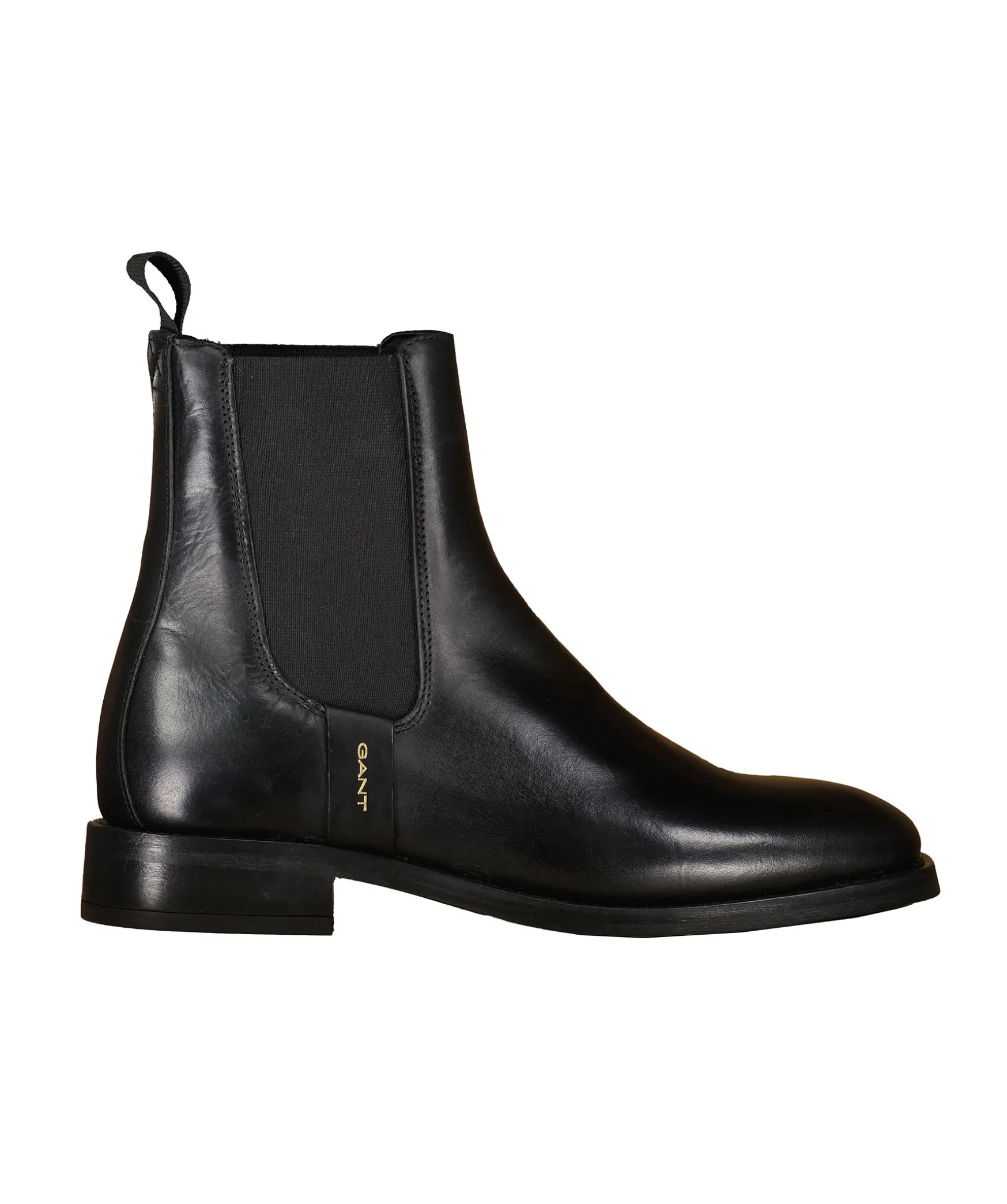 Chelsea Boots I Svart Lader Fran Gant. Resar Pa Sidorna, 3Cm Hog Klack, 15Cm Hogt Skaft. Logotyp Pa Skons Ena Sida Samt En Svart Halla Vid Halen. Innersula I Lader.