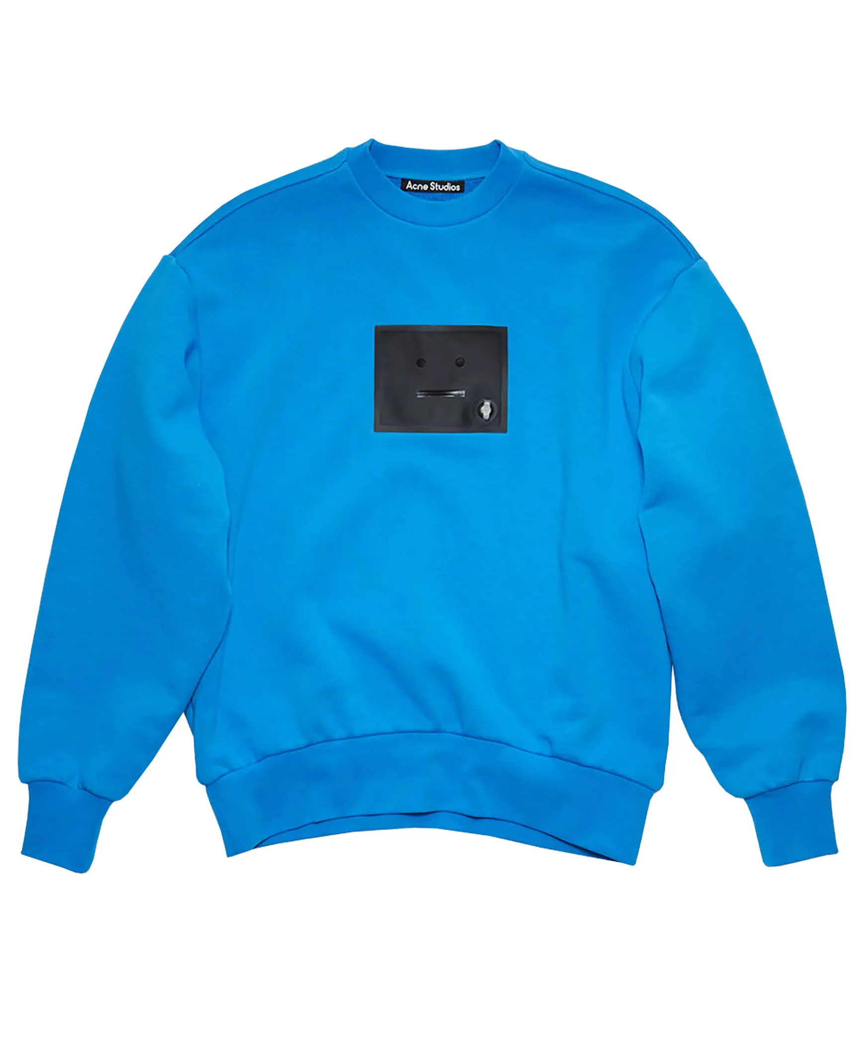 Bla Sweatshirt Fran Acne Studios. Upplasbar Face Logotyp I Gummi Med Ventil. Ribbstickade Muddar Vid Halsringningen, Arm- Och Plaggslut. Tillverkad I 100% Bomull.