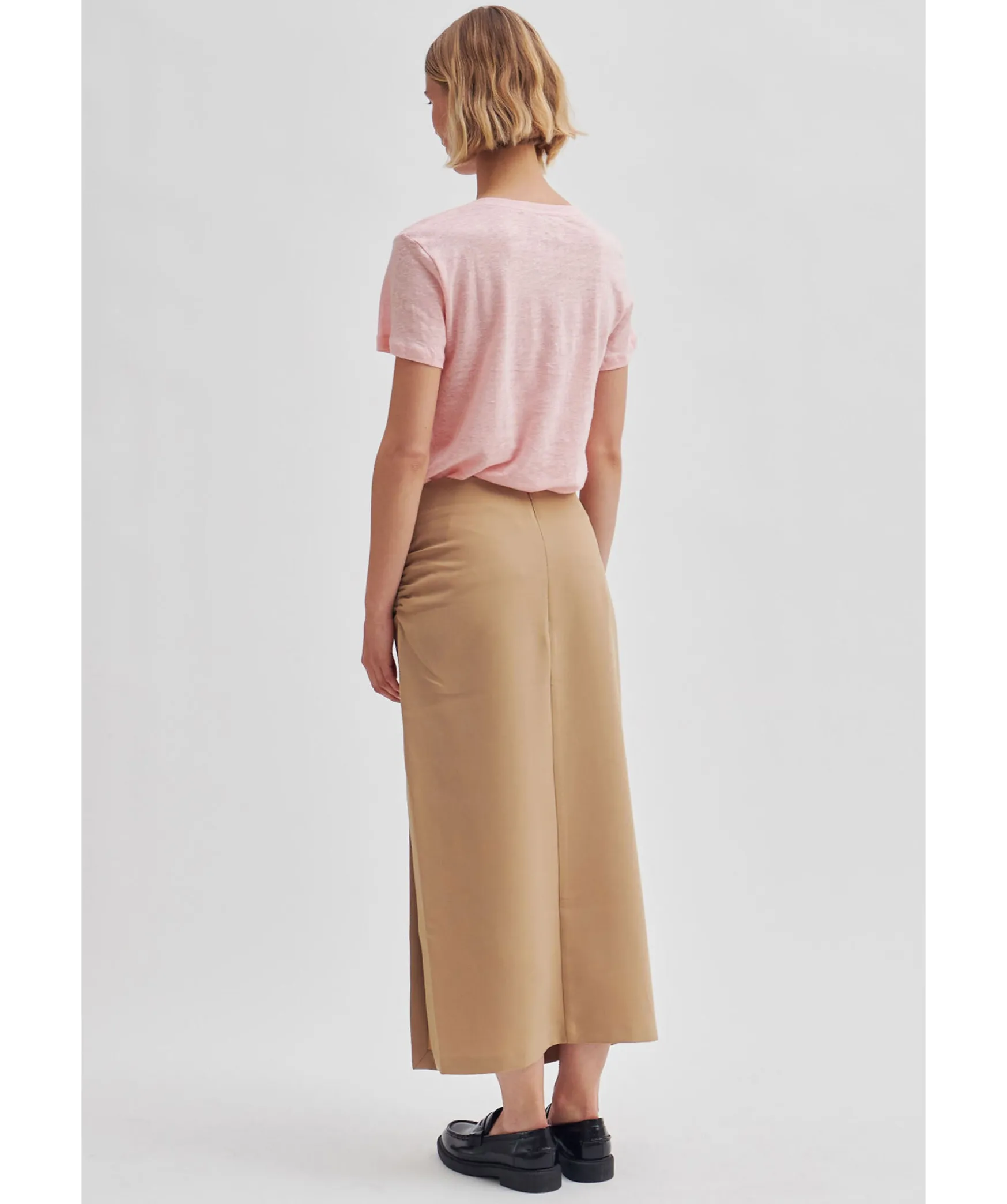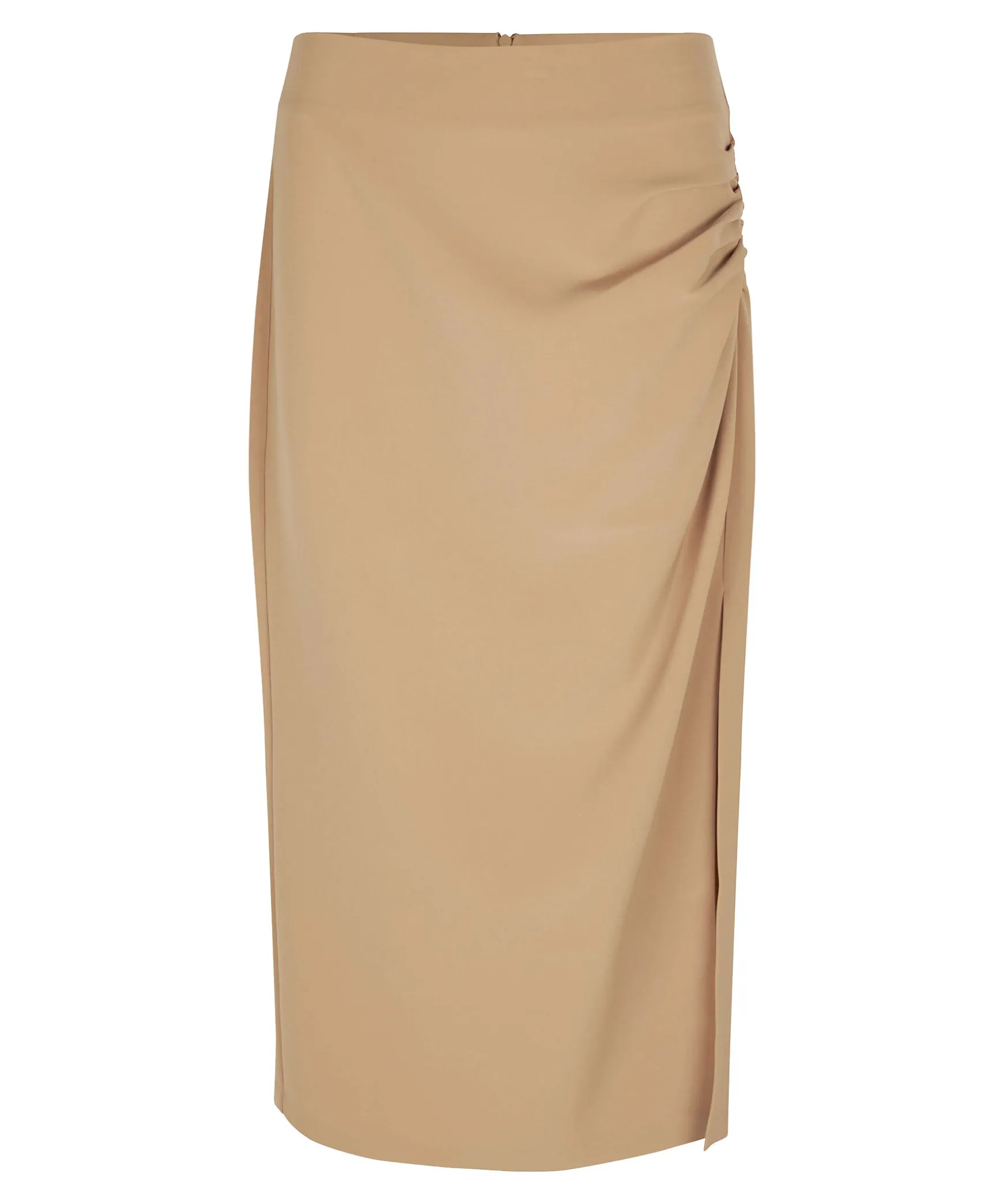 Beige Langkjol Fran Second Female. Kjolen Har En Rak Passform Och Draperings Detalj Och Slits Pa Ena Sidan. Stangs Med Dragkedja Baktill.