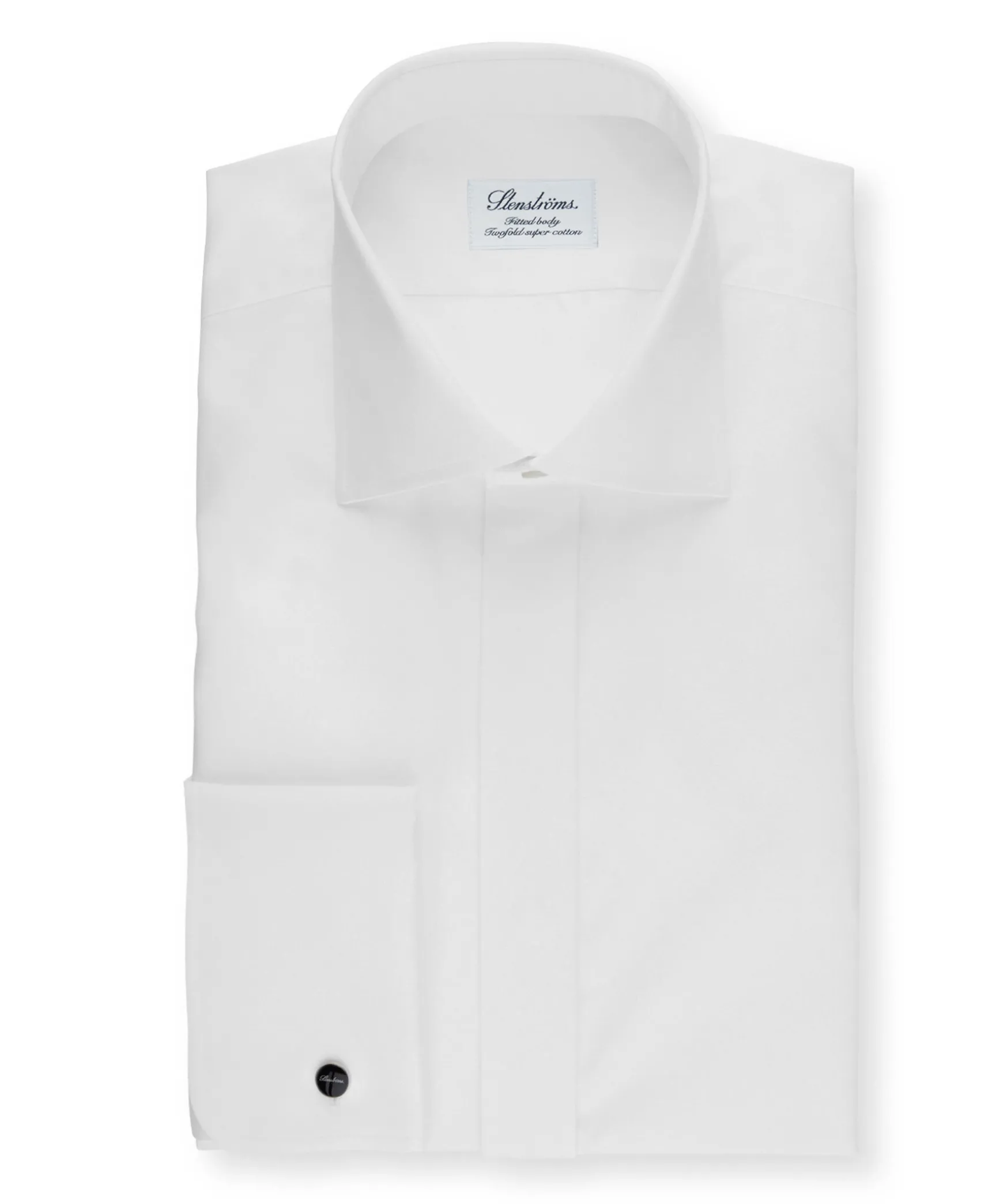 Denna Eleganta Aftonskjorta Fran Stenstroms Ar Gjort Av Mjukt Twofold Bomull. Skjortan Ar I Fitted Body, Vilket Innebar Att Den Har En Nagot Skraddarsydd Midja. Detaljerad Med En Dold Knappning, Dubbla Manschetter Och Cut Away Krage. Denna Skjorta Har Extralanga Armar (+4,5Cm) Och Extralang Bal (+5Cm).