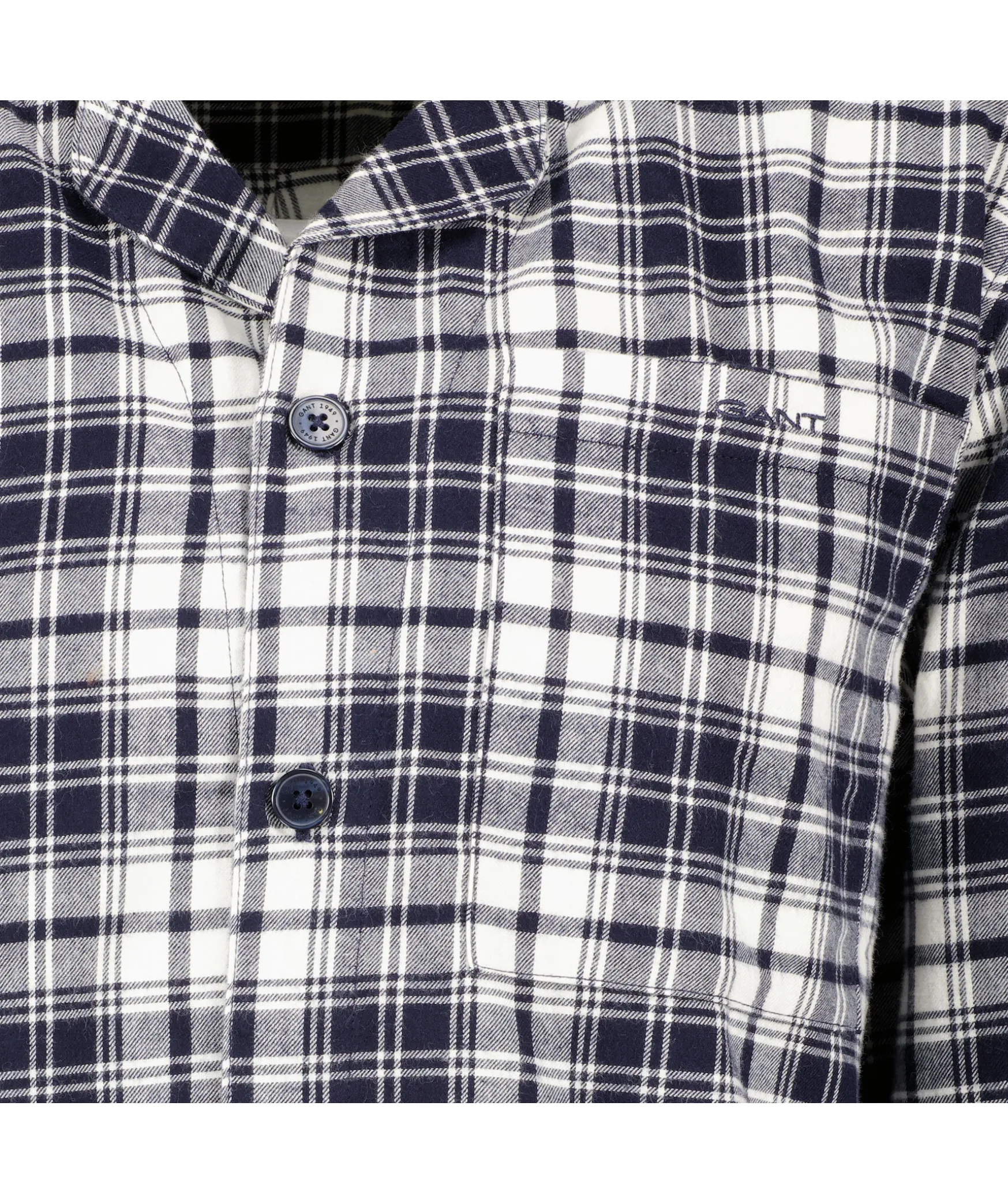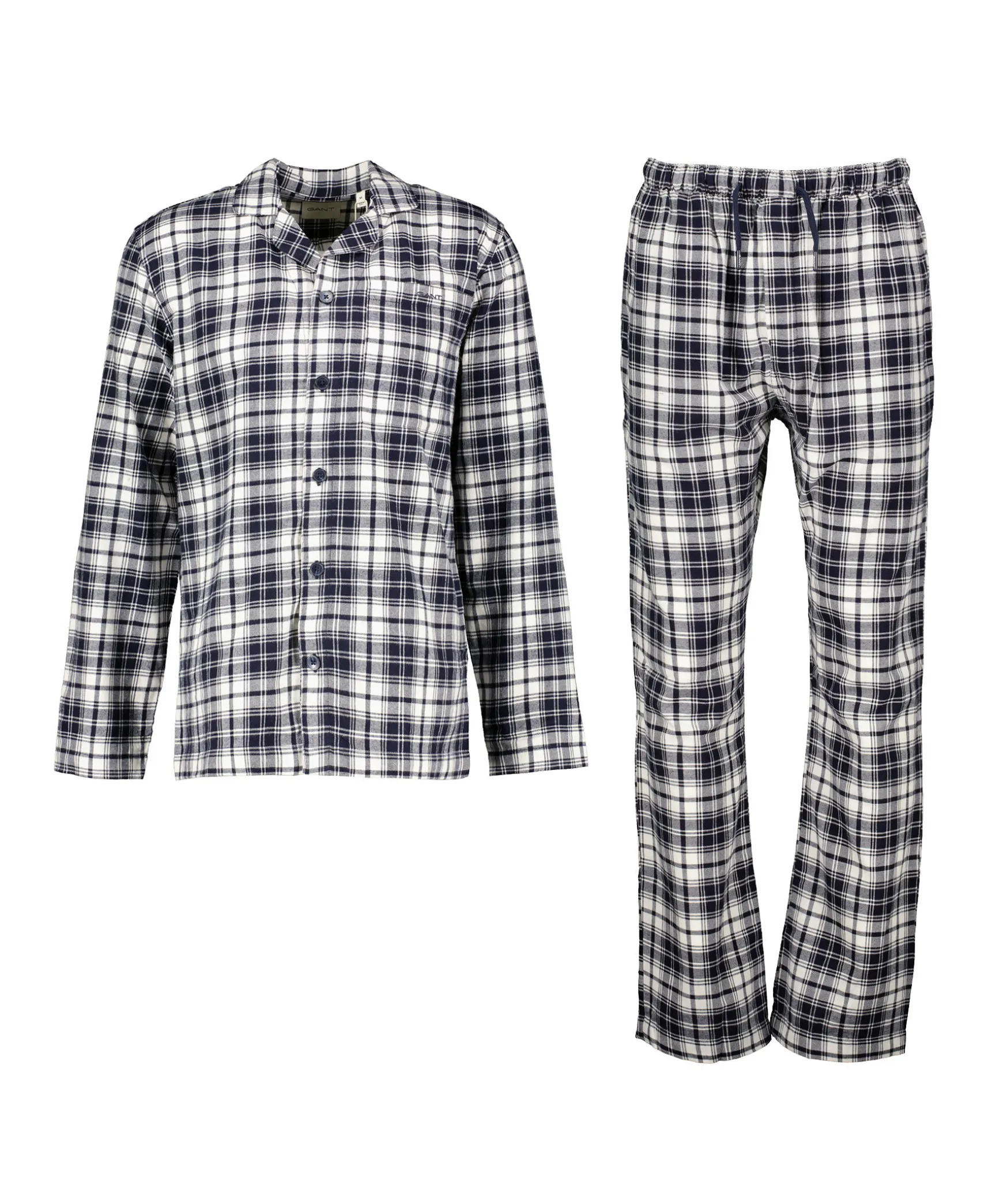 Marinblatt Pyjamasset I Presentforpackning Med En Langarmad Skjorta Och Byxor I Rutig Flanell Fran Gant. Perfekt Som Present. Skjortan Har En Brostficka Och En Broderad Gant-Logotyp Pa Fickan. Byxorna Har Raka Ben, Tva Sidfickor, Jacquardstickad Resarlinning Med Gant-Logotyper Och Dragsko I Midjan.