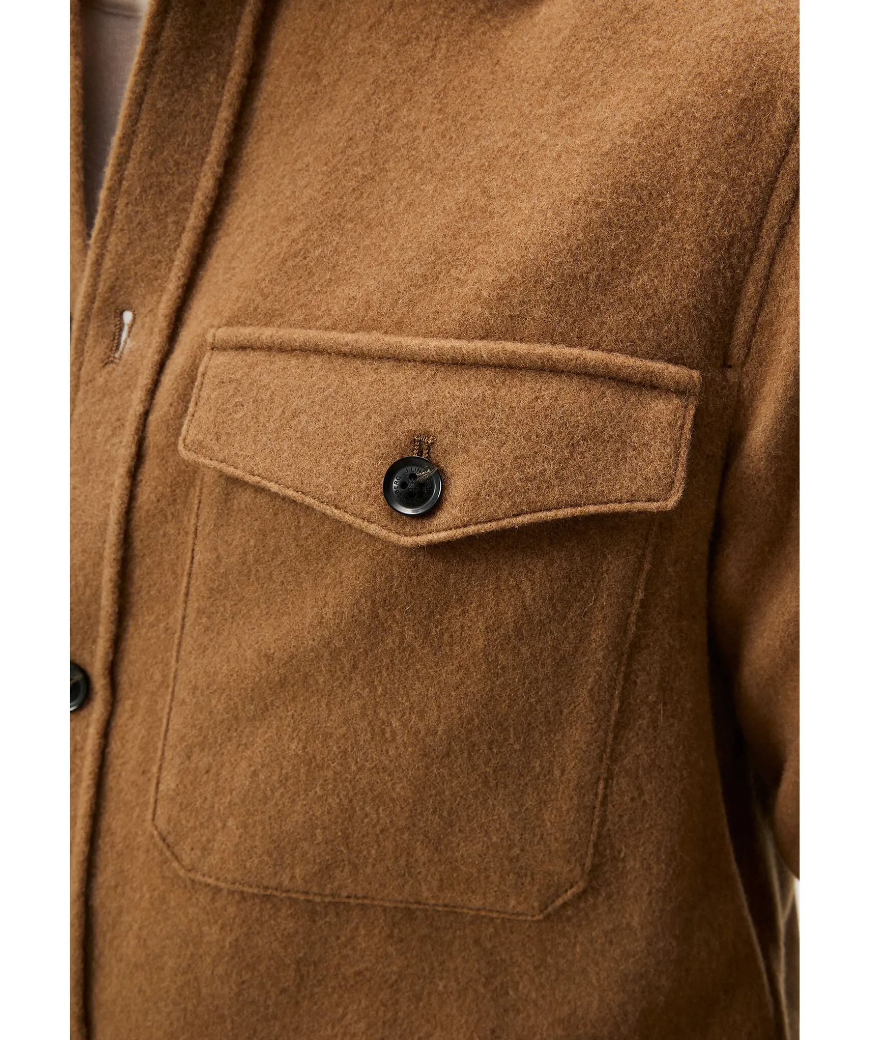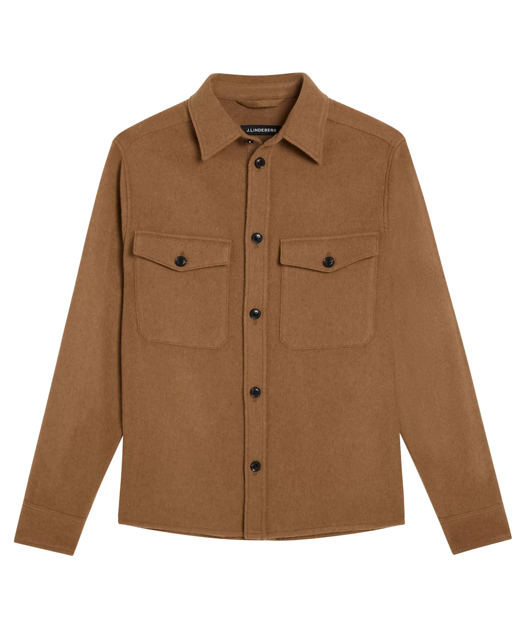 Kamelfargad Overshirt Fran J Lindeberg. Button Down Krage, Tva Brostfickor Med Knapp. Tillverkad Av En Ullblandning.