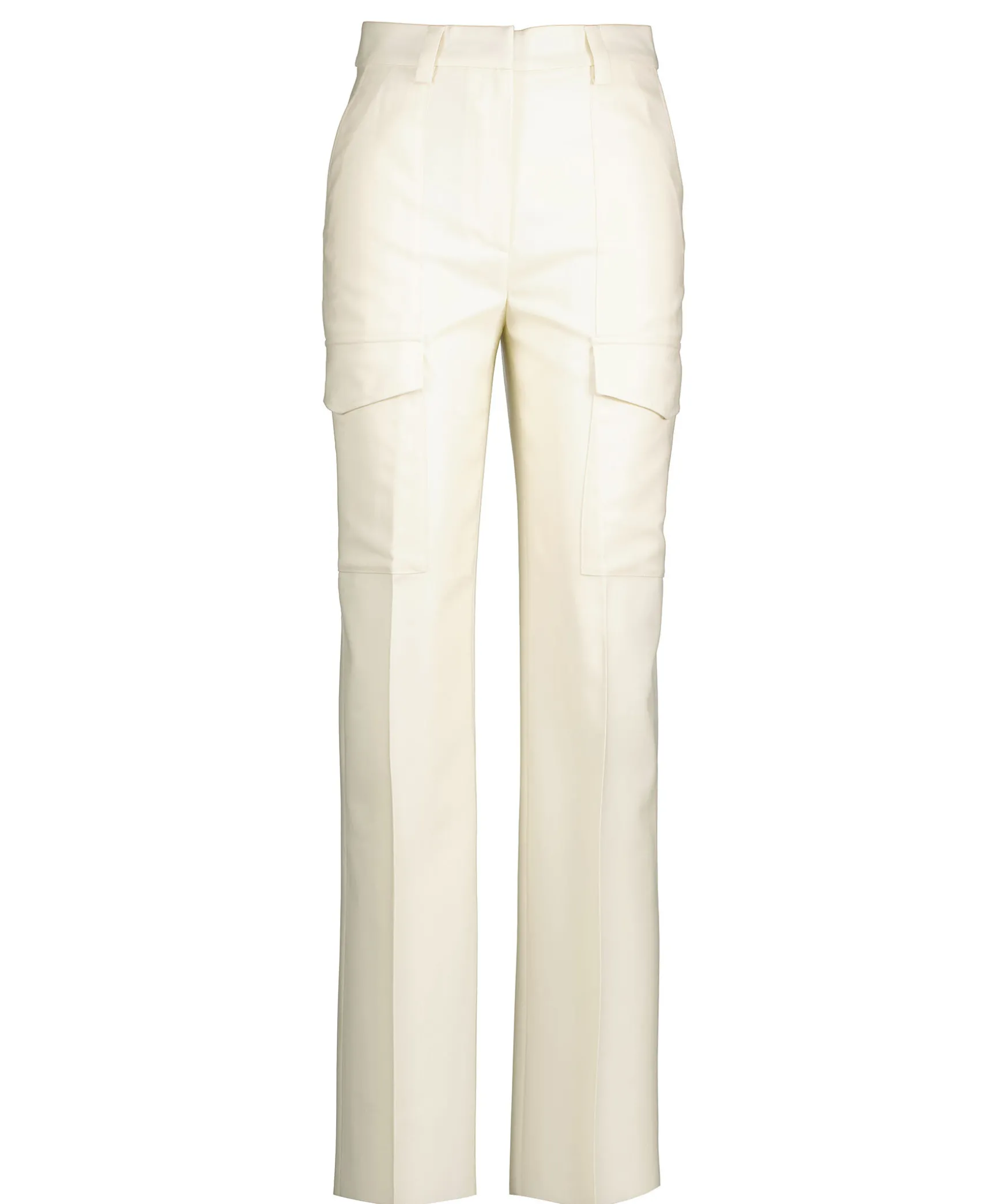 Kramvita Luftiga Cargobyxor Fran Gant. Har En Ny Silhuett I En Modern Tolkning Av Utilitylooken. De Ar Gjorda I Fin Och Supermjuk Italiensk Ull Med Snyggt Fall Och Luftig Kansla. Byxorna Har En Normal Passform Med Hog Midja, De Ar Smala Over Hoft Och Midja Med Avsmalnande Ben. De Har Cargoinspirerade Detaljer Med Pasydda Fickor Pa Framsidan Av Laret, Stickning Och Veckade Detaljer, Fickor Med Lock Bak Och Breda Balteshallor.
