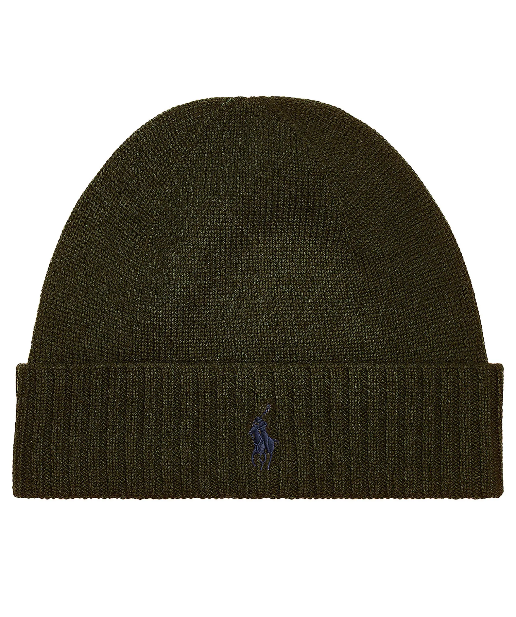 Morkgron Mossa Fran Polo Ralph Lauren. Uppvikt Kant, Broderad Logga I Blatt. Tillverkad I 100% Ull.