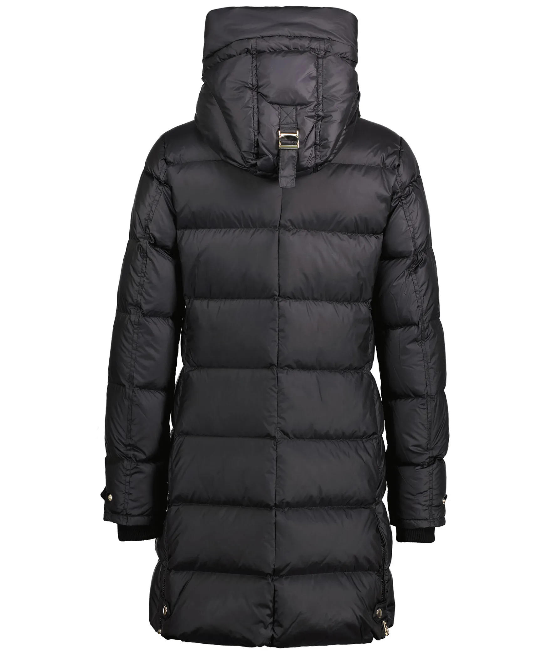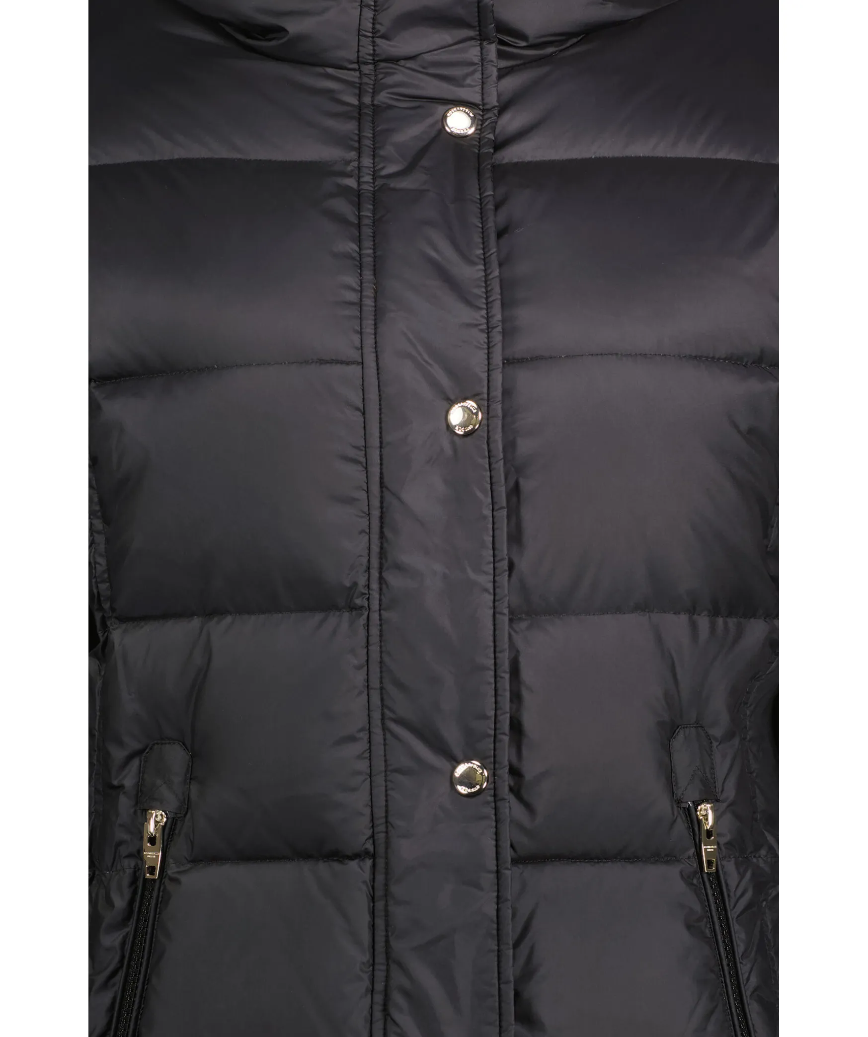 Svart Quiltad Dunkappa Fran Rockandblue. Stangs Framtill Med Guldfargade Knappar. Bricka Med Logotyp Pa Vanster. Tva Fickor Framtill Som Stangs Med Dragkedja. Innerficka Som Stangs Med Dragkedja.