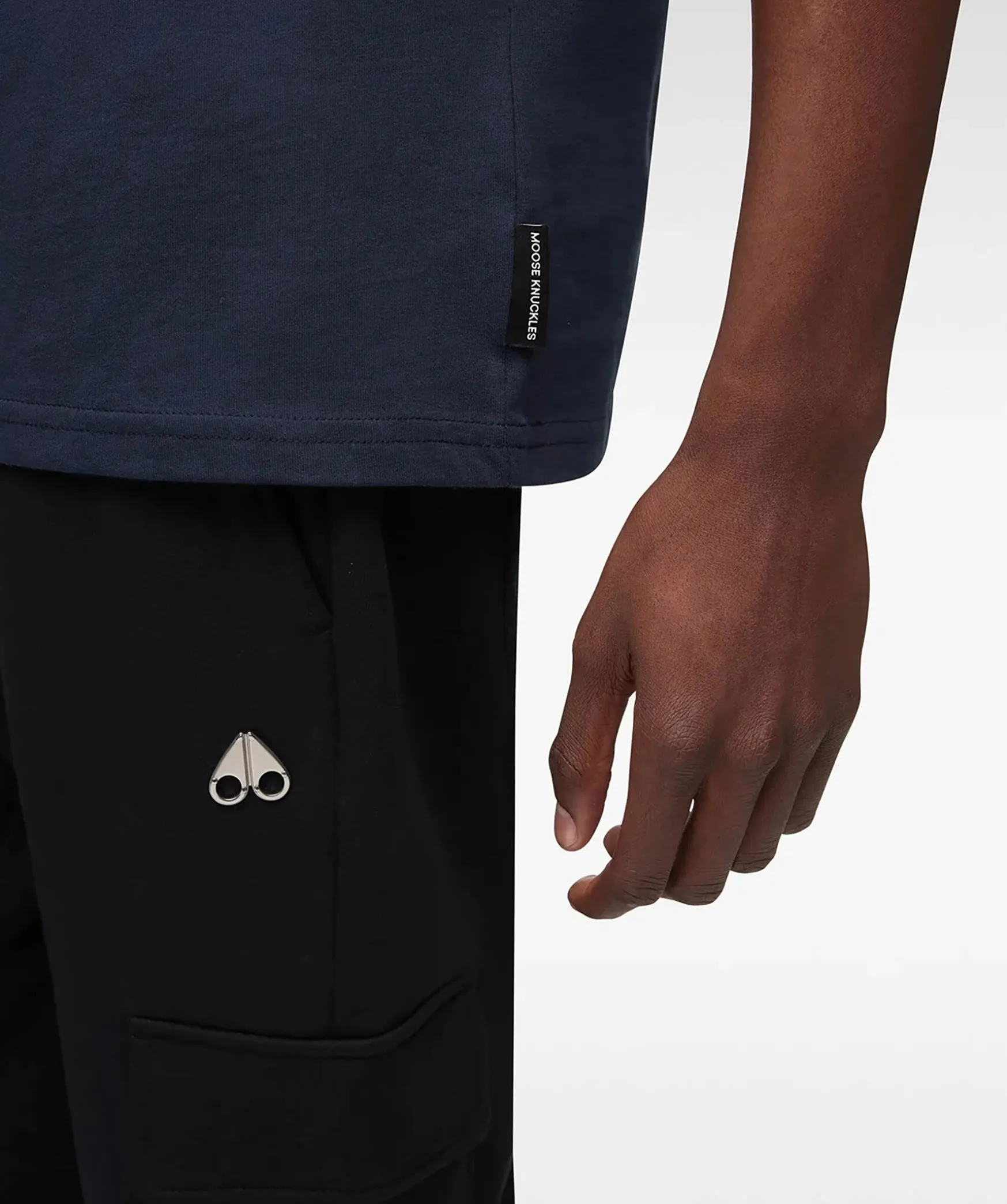 Marinbla T-Shirt Fran Moose Knuckles. Rundad Halsringning. Tryckt Logotyp I Vitt Mitt Pa Brostet. Tillverkad I 100% Bomull. Slim Fit Passform.