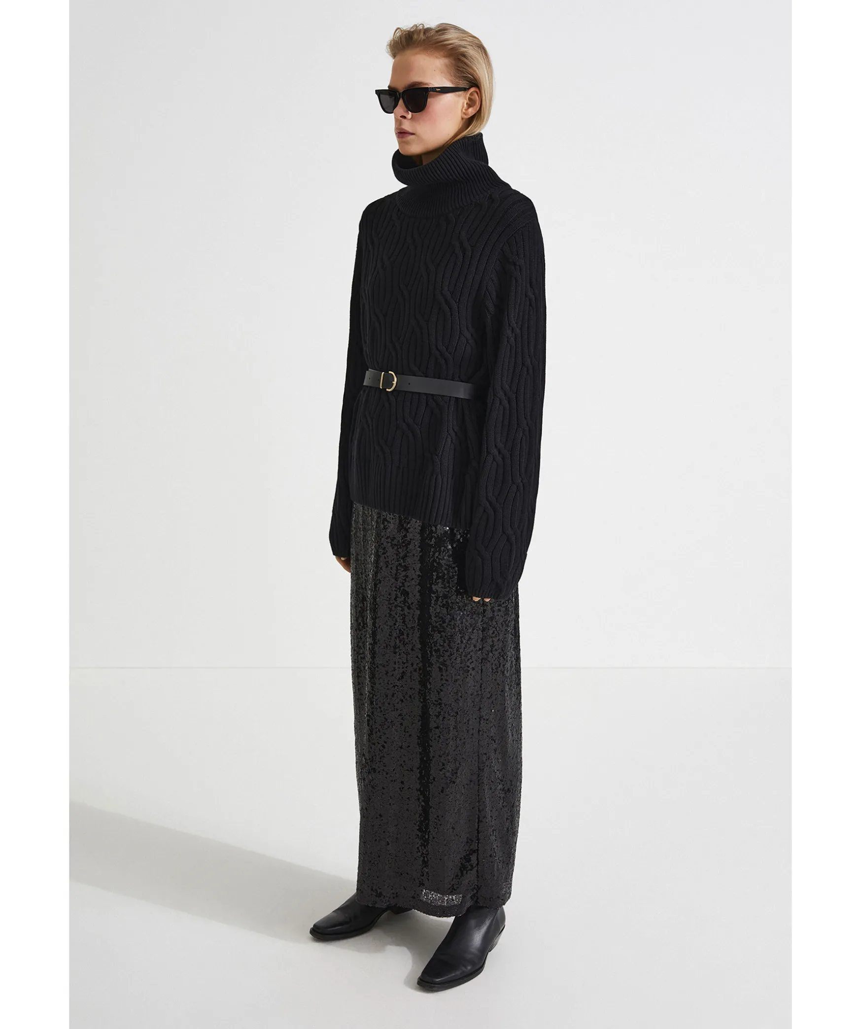 Svart Paljettkladd Kjol Fran Stylein I Maxi Modell. A-Linjeformad. Elastisk Resar I Midjan. Dold Dragkedja Pa Kjolens Vanstra Sida. Underkjol I Mesh/ Jersey Material.