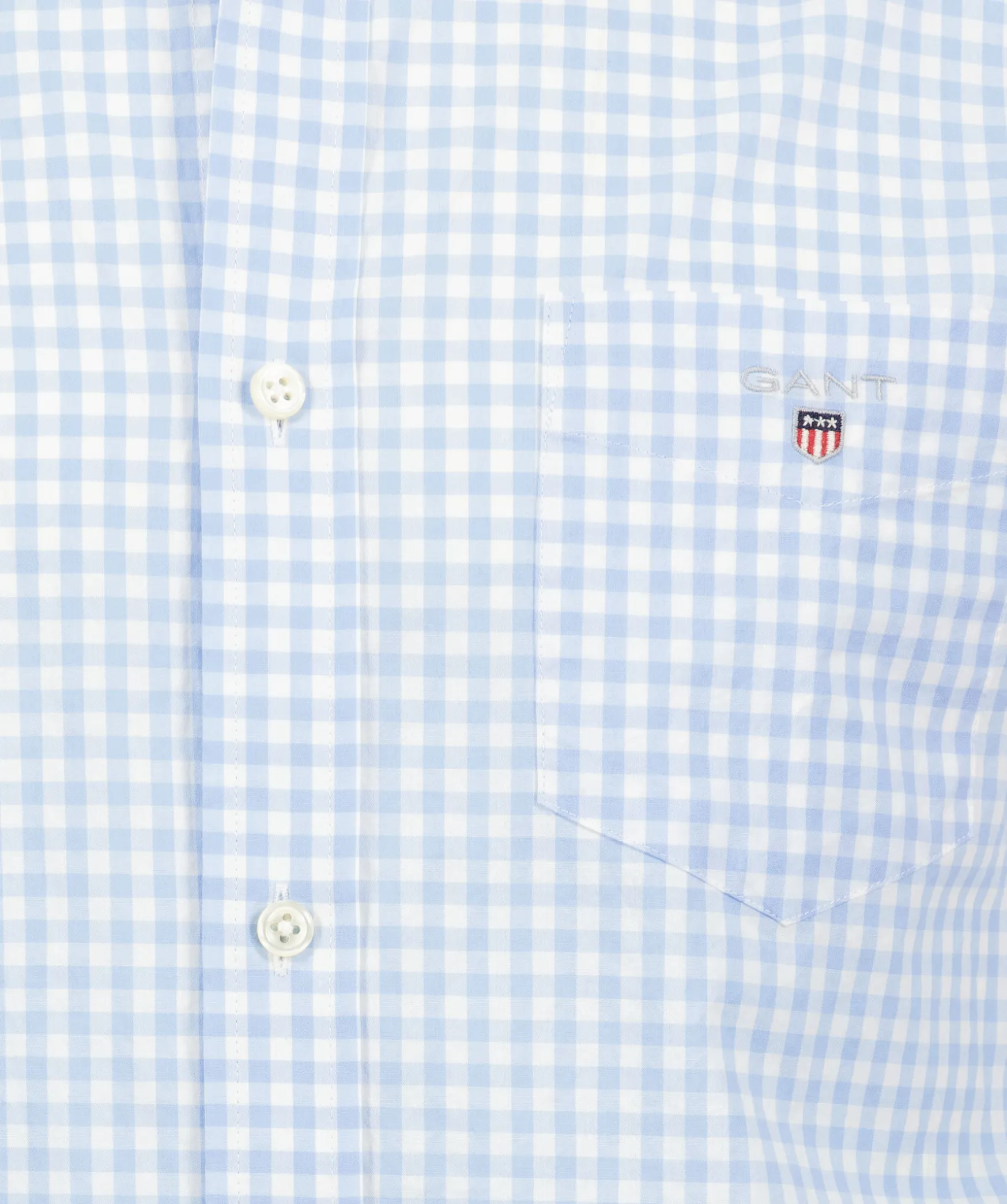 Vit Och Blaa Rutig Skjorta I En Regular Fit Fran Gant. Tillverkad I 100% Bomull. Brostficka Pa Vanster Sida Med Broderad Logotyp. Manschetter Med Knappar Och Button Down Krage. Skjortan Har Vita Knappar Hela Vagen Framtill Och En Normal Passform.