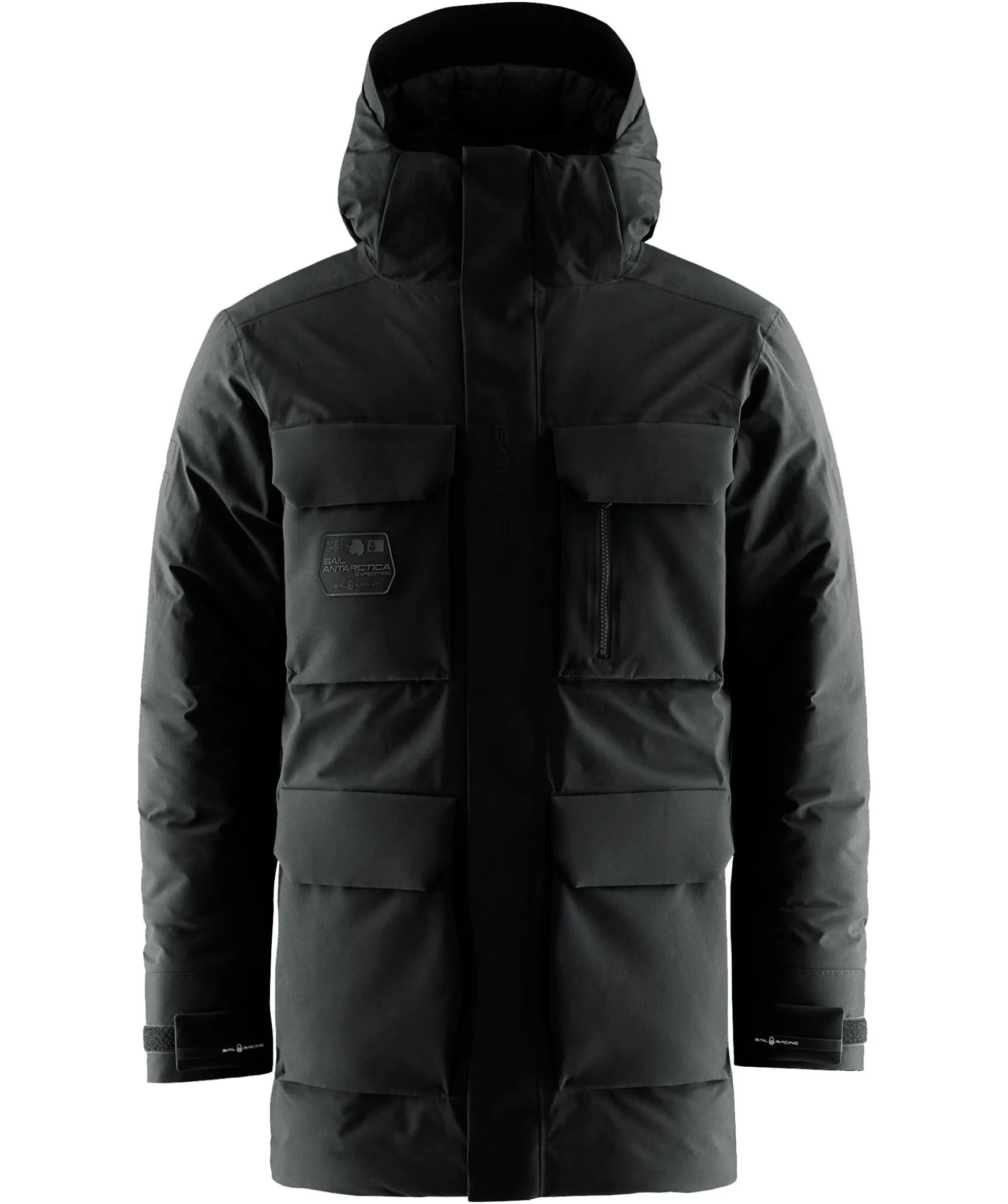 Svart Dunparkas Fran Sail Racing. Stangs Framtill Med Dold Dragkedja Och Tryckknappar. Fyra Fickor Framtill Med Ficklock. Justerbara Armslut Med Kardborre. Embossad Logotyp Pa Vanster Arm Och Framtill Pa Dragkedjan. Avtagbar Luva. Jackan Ar Tillverkad I Ett Vind Och Vatten Avstotande Material. Patch Med Gummerad Logotyp Pa Hoger Brost.