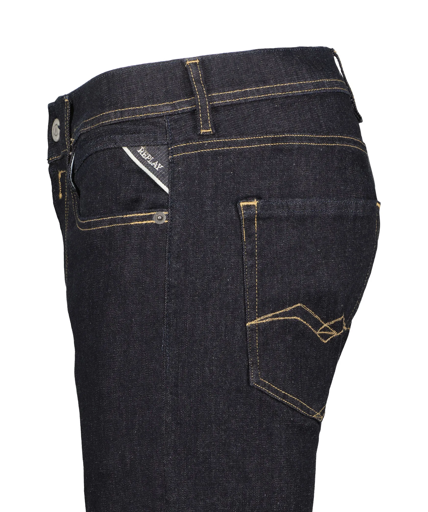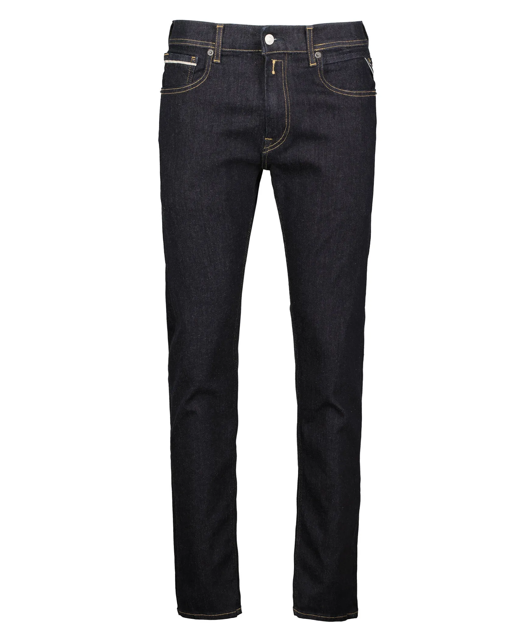 Morkblaa Straight Fit Jeans Fran Replay. Vanlig Midja Och Raka Ben. Fem Fickor, Myntficka Med Som Och Bakfickor Med Ikoniska Replay-Sommar Och R-Format Metall-Logotyp, Kontrastfargad Lader Etikett I Linningen, Gylf Som Stangs Med Dragkedja Och Knapp. Hallor For Balte I Midjan. Innerbenslangd: 73Cm I Storlek 32’30.
